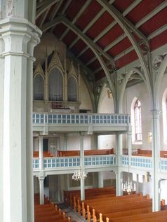 Vor 160 Jahren, am 18. Oktober 1856, besuchte der preußische König Friedrich Wilhelm IV. Jarmen. Der König war Initiator zahlreicher Kirchenneubauten und -renovierungen, auch in der pommerschen Provinz. Für den Neubau in Jarmen gab Seine Majestät 2000 Taler. Der Entwurf für die am 23. November 1863 eingeweihte Kirche soll von Friedrich August Stüler überarbeitet worden sein. Es handelt sich um eine Stufenhalle mit eingezogenem, polygonalen Chor, der Zeit gemäß in neugotischem Stil. Die Seitenschiffe sind mit Emporen ausgestattet, die bis an die schlanken, grazil wirkenden Stützen des Mittelschiffs herangezogen sind und von diesen mit getragen werden.