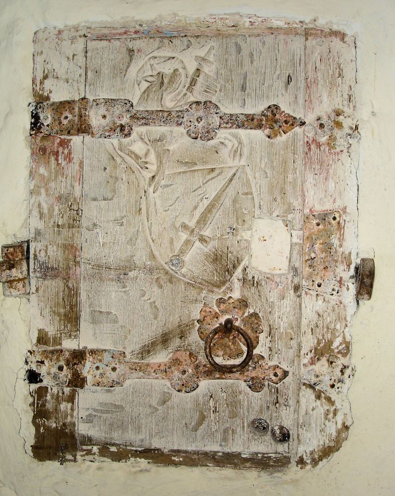 Sicherlich ist Ihnen auch schon einmal im Chorraum - dem Teil der Kirche, in dem der Altar steht - links neben dem Altar dieser merkwürdige "Wandschrank" aufgefallen. Dieser Schrank ist eine sogenannte Sakramentsnische oder Sakramentsschrank. In kleineren Kirche wurde solch ein Schrank anstelle eines aufwendigen Sakramentsturms, wie wir ihn beispielsweise im Doberaner Münster finden, eingerichtet. Sakramentshäuser und -nischen entstanden gegen Ende des 14. Jahrhunderts in Deutschland und dienten zur Aufbewahrung des eucharistischen Leib Christi, d.h. der Hostie und des Weins, manchmal auch für das Hostiengefäß und den Abendmahlskelch, die vasa sacra. Sie waren bis zur Reformation um 1540 in Gebrauch.