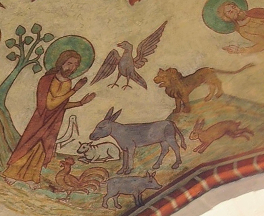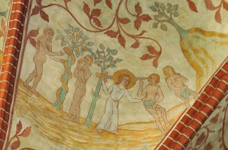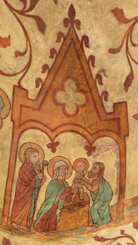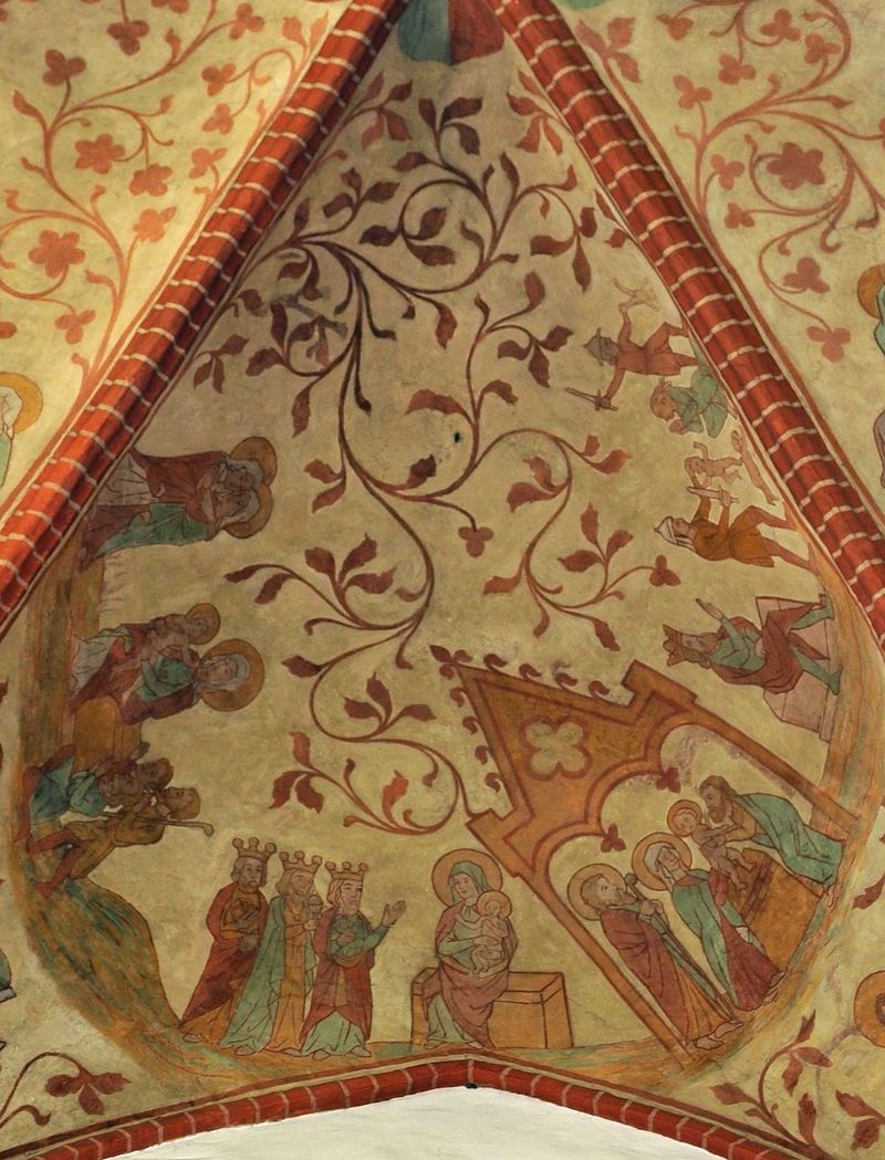 Mit den folgenden Ausführungen werden Sie in das 14. Jahrhundert hineingenommen. Wir sehen in der Gewölbemalerei wie in der Zeit des Mittelalters die biblischen Geschichten verstanden und mit ein paar Pinselstrichen biblische Kapitel den Menschen vor Augen gemalt und in Erinnerung gerufen wurden. Den Menschen damals waren diese biblischen Geschichten gegenwärtig und es spannte sich ein großer inhaltlicher Bogen zu ihrem eigenen Leben.