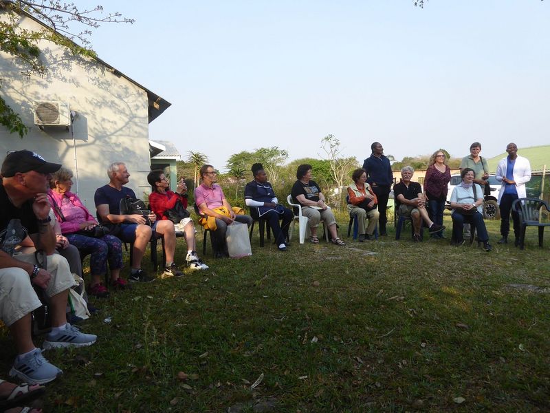 Am 31. August machte sich unsere Reisegruppe auf den langen Weg nach Südafrika. Unsere erste Station sollte Durban sein. Im Zug Richtung Hamburg und auf dem Hamburger Flughafen hatten wir genügend Zeit, um uns näher kennenzulernen. Mit unserer Pastorin Anke Kieseler reisten 23 abenteuerlustige Gemeindemitglieder und deren Freunde. Nachdem wir in London angekommen waren, erfuhren wir, dass es für unseren Flug nach Johannesburg keine Crew gab, so mussten wir eine Nacht in London bleiben. Mit über 14 Stunden Verspätung kamen wir am 1. September kurz vor Mitternacht in Johannesburg an. Unsere müde Truppe wurde am Flughafen herzlich von unserer deutschen Reiseleiterin Gesa Mackeprang begrüßt, die uns in unser Hotel brachte. Da wir den Anschlussflug nach Durban verpasst hatten, ging es am nächsten Morgen per Bus weiter Richtung St. Lucia. Die lange Busfahrt führte uns durch verschiedene Kulturkreise und wir entdeckten bereits viele landschaftlich interessante Gegenden. Die Fahrt wurde dank Gesa kurzweiliger als gedacht, da sie uns vieles über Südafrikas Geschichte, Kultur, Wirtschaft und Politik berichten konnte. An jedem Bus-Stopp sorgte sie für kleine Überraschungen, die unsere müden Lebensgeister wieder erwachen ließen.