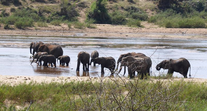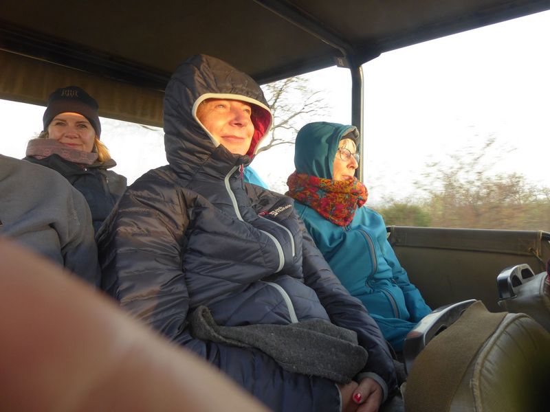 Nach diesem ereignisreichen Tag reisten wir am nächsten Morgen weiter in Richtung Kruger Nationalpark. Er ist der älteste Nationalpark in Südafrika und wurde 1898 von Paul Kruger gegründet. Bereits damals erkannte man, dass die wilden Tiere einen Schutzraum brauchen, denn sie waren bereits vom Aussterben bedroht. Allerdings richtete Kruger als damaliger südafrikanischer Präsident den Park eher zu seinem Nutzen ein, um selbst privat darin auf Großwildjagd gehen zu können. Der Park liegt im Nordosten von Südafrika und erstreckt sich bis nach Mosambik. Er ist das größte Natur- und Wildschutzgebiet Südafrikas und hat eine Fläche, die ungefähr so groß ist wie Mecklenburg-Vorpommern. Anstelle um den Park herum zu fahren, wie es geplant war, um zu unserem nächsten Hotel zu gelangen, reisten wir auf Vorschlag von Gesa mit unserem Reisebus durch den Park. Das war eine sehr gute Entscheidung, denn so konnten wir bereits von der Straße aus viele Tiere sichten. Dies war ein toller Auftakt, der mit dem Überqueren des Krokodilflusses zu Fuß begann. Ich habe noch nie so viele Krokodile auf einmal in einer so beeindruckenden Natur gesehen. Für den nächsten Tag war dann eine Ganztagessafari geplant. Bereits 6 Uhr morgens konnten wir den Sonnenaufgang vor den Toren des Kruger Nationalparkes genießen. Anschließend wurden wir auf drei Safarifahrzeuge aufgeteilt und fuhren in der morgendlichen Kühle warm eingemummelt in den Park. Das Ziel vieler Safari-Gäste ist es, die „Big Five“ zu sichten: Löwe, Elefant, Büffel, Nashorn und Leopard. Diesen Namen erhielten sie vor langer Zeit von Großwildjägern, da diese Tiere am schwersten zu erlegen waren. Zum Glück wird heute nur noch mit der Kamera auf Jagd gegangen. Wir hatten das große Glück, alle der „Big Five“ zu sichten, ein Leopard und 4 Löwinnen auf einer Sandbank machten unser Quintett komplett. Aber für mich sind die Giraffen und die zahlreichen Antilopen, die Zebras, Pumbaas und Hyänen sowie die bunte Vogelwelt ebenso beeindruckend gewesen.