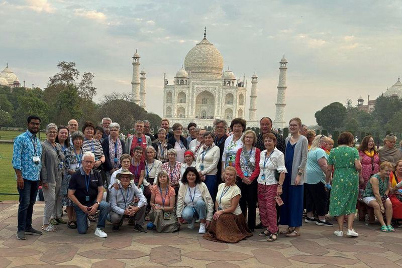 Nachdem es bei allen 34 Reisefreudigen mit der Visabeschaffung geklappt hatte, startete am 12.03.2025 eine unvergessliche Reise in ein faszinierendes vielschichtiges Land, das so von Widersprüchen geprägt ist. Nach der Ankunft in Delhi wurden wir von unserem indischen Reiseleiter Virendra Singh Shekha, im weiteren Verlauf der Reise Viru genannt, begrüßt. Gleich begann eine Stadtrundfahrt durch das alte und das neue Delhi mit Besichtigung der Jama Masjid (Freitagsmoschee), Indiens größter Moschee, einem Besuch von Raj Ghat, dem Grabmal Mahatma Ghandis und anschließend sahen wir das 71m hohe Qutb Minar, ein Sandsteinminarett aus dem 12. Jahrhundert. Nach diesen teils überwältigenden Eindrücken war es Zeit für das Hotel und das Abendessen. Die nächste Station war Pushkar, aber auf dem Weg dorthin konnten wir das indische Frühlingsfest Happy Holi mitfeiern. Die Menschen begrüßen sich mit „Happy Holi“ und reiben sich mit Farbpulver ein und feiern mit Musik und Tanz. Unser Viru hatte alles für uns besorgt und so setzten wir recht bunt eingefärbt die Reise nach Pushkar fort. Dort besuchten wir den Brahma-Tempel und danach hatten wir die Gelegenheit, mit einem „Wüstenschiff“ die Gegend zu erkunden, was sich als eine sehr wackelige Angelegenheit herausstellte. Da war das Verweilen am Heiligen See mit Musikdarbietung doch wesentlich entspannter. Die Fahrt ging weiter nach Udaipur, auch „Venedig des Ostens“ genannt, mit seinem schönen Seepalast. Auf unseren Fahrten brachte uns Viru die Geschichte Indiens mit all ihren Facetten in einer sehr warmherzigen Art näher und man merkte ihm an, wie stolz er auf sein Land ist. In Udaipur schauten wir uns den Jagdish-Tempel an, der dem Gott Vishnu geweiht und der größte Tempel der Stadt ist. Der Weg führte uns weiter zum „Marcus Platz“ mit den vielen Tauben und Brücken und anschließend sahen wir den wunderschönen Garten Sahelionki Bari aus dem 18. Jahrhundert. Es folgte ein Besuch des Kunstmuseums mit einer sich anschließenden Marionettenvorführung. Auch eine Bootsfahrt auf dem Pichola-See mit herrlichem Blick auf den Stadtpalast, Schauplatz des Filmes „Der Tiger von Eschnapur“ , stand auf dem Programm. Die nächste Station war Jaipur, die rosarote Stadt. Rosarot ist Rajasthans traditionelle Farbe der Gastlichkeit. Unterwegs besuchten wir eine staatliche Schule und waren begeistert von der Disziplin der Schülerinnen und Schüler. Dort überreichten wir Geldspenden und Geschenke (Hefte, Stifte, Zeichenblöcke, Süßigkeiten), die an die Kinder verteilt wurden. Angekommen im Hotel wurden wir, wie in fast allen Hotels, mit einem Drink begrüßt und bekamen einen roten Punkt auf die Stirn. Später ging es im offenen Jeep durch das nächtliche Jaipur mit verschiedenen Fotostopps. Der Verkehr in dieser 3 Millionenstadt ist unglaublich, aber irgendwie funktioniert es. Da konnten wir auch in den Jeeps stehen und fotografieren und filmen, denn Anschnallpflicht wird nicht so ernst genommen. Eine Besichtigung des Amber-Forts, im Stile grandioser Mughal-Architektur errichtet, darf in Jaipur nicht fehlen, ebenso der Stadtpalast sowie Jantar Mantar, nach astronomischen Gesichtspunkten entworfene Bauwerke. Eine Rikschafahrt durch die engen Gassen von Jaipur und der Besuch einer Teppichfabrik, wo auch Mitreisende vor Begeisterung einen Teppich kauften, beendeten das Tagesprogramm. Weiter ging es Richtung Agra, aber unterwegs lag das alte Fatthpur Sikri (UNESCO Weltkulturerbe), heute eine großartige und gut erhaltene Geisterstadt in Indien. In Agra befindet sich das Agra Fort, das täglich von ca.3000 Touristen besucht wird. Es ist eine Festungs- und Palastanlage aus der Epoche der Mogulkaiser und befindet sich etwa 2,5 km vom Taj Mahal entfernt. Und so konnten wir von dort schon mal einen Blick auf dieses Bauwerk, eines der 7 Weltwunder, werfen. Zum Abschluss des Tages besuchten wir eine Station der Missionare der Wohltätigkeit im Mutter-Teresa-Haus, in dem behinderte Kinder und Erwachsene von Nonnen betreut werden. Zum Sonnenaufgang machten wir uns am nächsten Morgen auf den Weg zum Taj Mahal, einem imposanten Bauwerk, das Großmogul Shan Jahan seiner verstorbenen Hauptfrau Mumtaj Mahal ab 1631 erbauen ließ. Vor diesem Gedicht aus weißem Marmor zu stehen war sicher einer der Höhepunkte dieser Reise. Und nun gab es erstmal eine Pause. Air India brachte uns in den Süden Indiens, nach Kochi und per Bus ging es weiter nach Mararikulam, wo wir 3 Tage ein Strandparadies erlebten durften. So fühlt sich Urlaub unter Palmen an. Weiter ging die Reise nach Periyar, Indiens berühmtem Wildreservat. Bevor aber das Bett rief, unternahmen wir einen Ausflug zu einer Gewürzplantage mit Führung und besuchten eine Vorführung indischer Kampfkunst mit Feuershow. Am folgenden Tag erkundeten wir das Wildreservat mit dem Boot, per Jeep und bei einer 3-stündigen Wanderung und bekamen auch einige Tiere zu sehen. Die Reise näherte sich dem Ende, aber es gab noch ein besonderes Erlebnis. Und so fuhren wir nach Alappuzha und bestiegen dort liegende Hausboote, um die Backwaters (Stauwasser) zu erkunden. Diese bilden den Mittelpunkt des Bundesstaates Kerala und sind ein begehrtes Ziel für jeden Besucher. Von der Besatzung wurden wir mit köstlichen indischen Speisen verwöhnt und der abendliche Sonnenuntergang war wunderschön. Und wir lernten auch, dass man nicht unbedingt Poller für das Festmachen der Boote braucht, ein dort stehender Baum tut es auch. Am folgenden Morgen verließen wir die Hausboote und der Bus brachte uns nach Kochi, wo wir uns zunächst eine Wäscherei-Kooperative anschauten, in der noch mit herkömmlichen Methoden gearbeitet wird. Die ältesten Synagoge Indiens von 1568 wurde besichtigt, ebenso der holländische Palast und die St. Francis Kirche, die erste europäische Kirche Indiens,1516 von portugiesischen Siedlern erbaut. In dieser Kirche befindet sich die Grabplatte Vasco da Gamas. Der Abend klang mit einer besonde