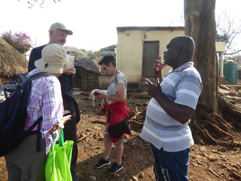 Am darauffolgenden Tag besuchten wir ein Zulu Dorf und lernten viel über die Traditionen der Zulus. Unser Gastgeber führte uns durch das Anwesen seiner Eltern, wo er noch als unverheirateter Mann lebt. Er berichtete, wie schwierig es für ihn sei, seine Hochzeit zu finanzieren. Er benötigt bereits Jahre, um insgesamt 11 Kühe zu erwerben, die der Brautvater verlangt. Interessant war auch das Rundhaus der Ahnen. Nach dem Tod wird sofort dafür gesorgt, dass sich die Seelen der Verstorbenen in der Hütte der Ahnen niederlassen. Die Zulu glauben, dass diese nun auf einer spirituellen Ebene leben und als Schutzengel und Vermittler zwischen Gott und den Menschen fungieren. Die Seelen der Ahnen werden regelmäßig in das irdische Leben einbezogen, um Rat gefragt, geehrt und ihnen werden vom Familienoberhaupt auch Opfergaben dargebracht.