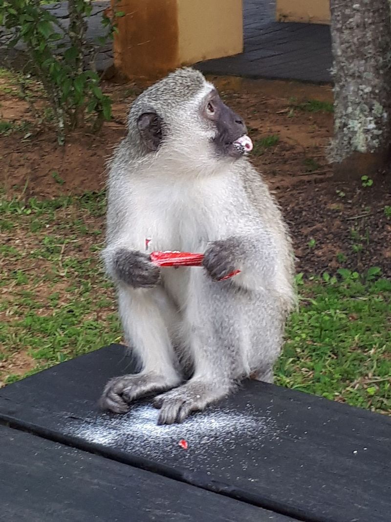Unser Busfahrer Joseph brachte uns sicher an unser erstes Ziel St. Lucia, wo Gesa uns die Begegnung mit Nilpferden versprach. Im Hotelgarten warnen Schilder vor den Nilpferden, die nachts auf Futtersuche durch die Straßen wandern. Was viele nicht wissen: die doch eher träge aussehenden Nilpferde sind die gefährlichsten Säugetiere Afrikas. Kein anderes Tier ist so aggressiv wie das Nilpferd und wer einem begegnet, sollte um sein Leben rennen. Da ein Nilpferd schon mal ein Tempo von 50 km/h und das über eine längere Distanz erreichen kann, war es doch sicherer, nachts im Hotel zu bleiben. Am nächsten Morgen konnten wir beim Frühstück im Hotelgarten bereits die grünen Meerkatzen beobachten, die aus einem Hotelzimmer Kaffeeweisser stibitzt hatten. Nun konnte unser Urlaub also beginnen. St. Lucia war der perfekte Ausgangspunkt für unsere Bootstour in den iSimangaliso Wetland Park, dem ersten UNESCO Weltnaturerbe-Park in Südafrika, wo wir unsere ersten Nilpferde sahen. Außerdem machten wir einen Ausflug an den Indischen Ozean, wo sich die besonders Mutigen in die Fluten stürzten. Ein Höhepunkt war der sonntägliche Besuch eines Gottesdienstes in einem Zuludorf, wo uns der Gesang der Kinder der Sonntagsschule, begleitet von afrikanischen Trommeln, begrüßte. Das war ein sehr anrührender Moment für uns.