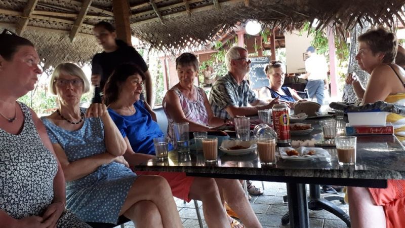 Schon am nächsten Tag erwarteten uns wieder interessante Unternehmungen. Unser Reiseleiter Tuan war sehr erstaunt, als wir den Wunsch äußerten, am Sonntag einen Gottesdienst besuchen zu dürfen. Es war ein Gottesdienst "der etwas anderen Art", in einem - zum Teil offenen - Gotteshaus und interessanten Menschen und Abläufen. Während wir in unserer Dorfkirche meistens mit Jacken bekleidet sitzen, erlebten wir dort das Gegenextrem. Die Plätze in der Nähe der Ventilatoren waren "heiß" begehrt. Ein Kirchen-Lied durften wir während des Gottesdienstes auch zum Besten geben und ernteten dafür den Beifall der Gemeinde.