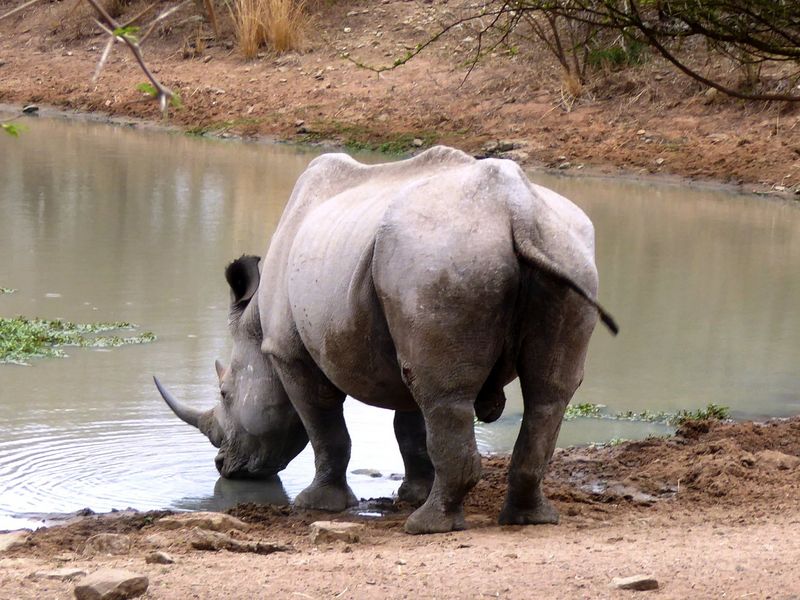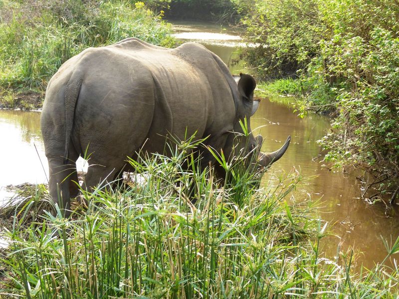 Am nächsten Morgen ging es dann per Bus weiter zu einem Hospital, was von der Schweizerin Nicoliene geführt wird. Wir konnten deren Naturheilkonzept kennenlernen, uns mit den Ärzten unterhalten und den Heilkräutergarten besichtigen. Gleichzeitig wurde einer unserer Mitreisenden geholfen und ich durfte übersetzen und dadurch miterleben, wie die Ärzte arbeiten. Das war sehr beeindruckend. Anschließend fuhren wir weiter nach Hluhluwe, wo uns unsere erste Safari in das älteste Tierschutzgebiet Südafrikas, den Hluhluwe-iMfolozi-Park erwartete. Er liegt mitten im zentralen Zululand in der Region Kwazulu-Natal und ist besonders berühmt wegen der großen Population an Nashörnern. Im Gegensatz zu anderen Nationalparks haben die Nashörner hier noch ihre langen Hörner. Diese sind sehr begehrt und inzwischen mehr wert als Gold. Die Nashörner werden von Wilderern gejagt und nur wegen des Horns getötet, weil man ihren Hörnern medizinische Wirkung nachsagt, wie Fiebersenkung oder sogar die Heilung von Krebs. Es hat sich aufgrund seines hohen Wertes zu einem Statussymbol entwickelt. Dabei besteht ein Nashorn-Horn genauso wie menschliche Fingernägel aus nichts weiter als Keratin. Um Nashörner zu schützen, wird ihnen z.B. im Kruger Nationalpark das Horn vorsorglich abgesägt.