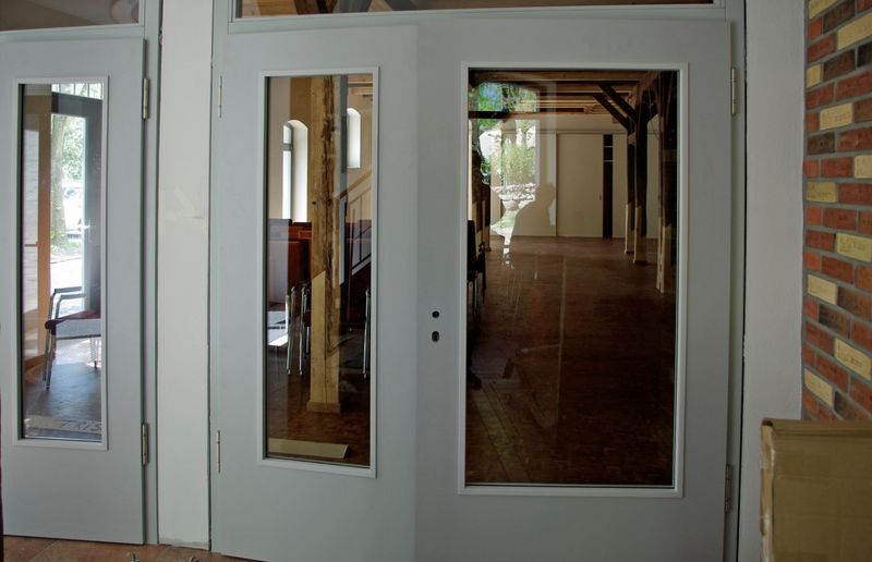 Der Saal wurde noch einmal frisch gemacht und auch alle anderen Räume sind vom Baustaub befreit. Herzlichen Dank an das Team um Conny Buck. Die Feinreinigung wird noch weiter gehen, aber neuer Baustaub soll nicht mehr entstehen - oder gleich entfernt werden. Die Schließanlage ist eingebaut, die Kirche ist einbezogen. Das große Tor wurde aufgearbeitet, die Toilettentrennwände eingebaut, ebenso die Steckdosen mittig im Saal zwischen zwei Pfeilern. Und endlich kam die große Lieferung der Brandschutztüren für die Flure, sie war schon vor 14 Tagen erwartet worden.