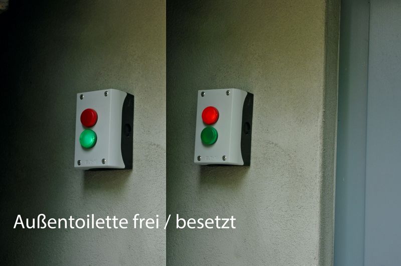 Die beiden blauen Container, die als Werkstatt und Mieterschuppen dienten, sind auf den Friedhof umgesetzt worden. Am Haupteingang findet sich der Taster zum Türöffnen und innen gibt es viele "Bummsinchen", damit die Türen nicht an die Wand oder gegeneinander schlagen. Im Saal wurde der Verstärker für die Hörschleife installiert, ebenso WLAN für das ganze Haus.