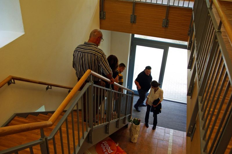 An den Treppen sind die zweiten Handläufe angebracht worden, die Stühle für den Saal wurden weiter hergerichtet und Türfenster geputzt. Bei einer Saaltür wurde der Wetterschenkel bei Bauarbeiten beschädigt und ist jetzt ausgetauscht. Die blauen Container sind leer gezogen und können umgesetzt werden. Die Beete sind reichlich bepflanzt dank schöner Blumenspenden. Die Kindergarderobe hängt schon an der Wand, die "Großen" müssen noch warten. Einbau der Saaltüren ist komplett, elektrische Türantriebe ebenfalls, in den Lagerräumen stehen die Regale fertig aufgebaut, großer Dank an die Männergruppe. Das Außen-WC hat einen Windhaken und die Besetztleuchte funktioniert auch.