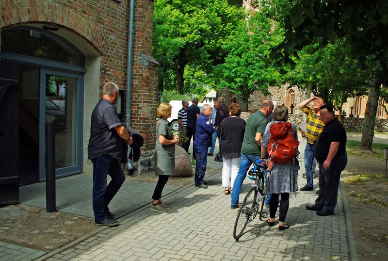 Am Donnerstag, 28. Juni 2018, besichtigte Frau Wierzchowski (Landkreis Rostock, Amt für Kreisentwicklung, Zentrale Fördermittelstelle) unsere Pfarrscheune, um den Einsatz der zugesagten Mittel zu begleiten. Dabei übergab sie uns das Schild, das gut sichtbar an der Baustelle angebracht werden soll. Pastorin Anke Kieseler nahm es erfreut entgegen.