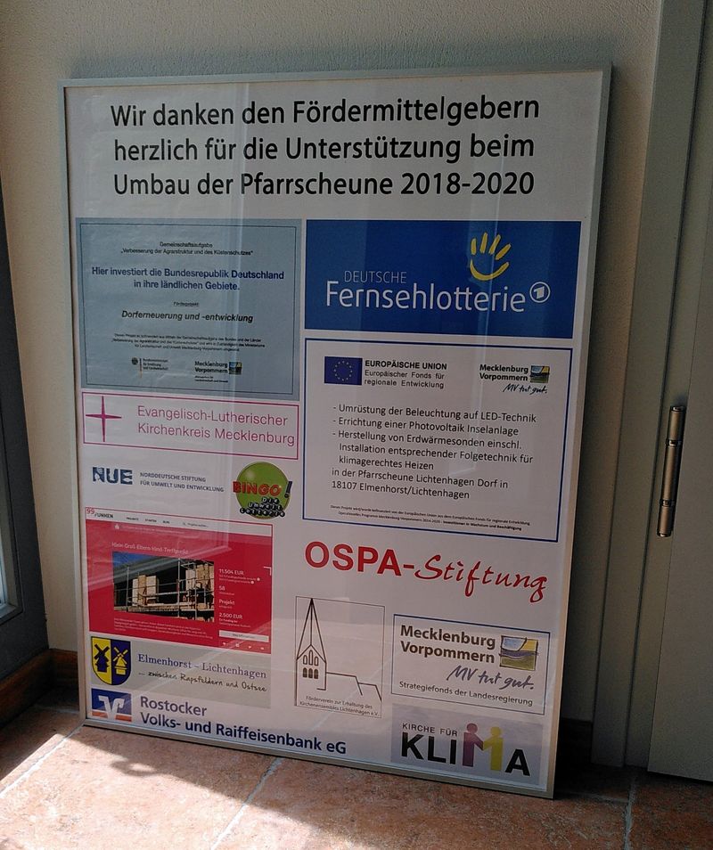 Als Dank für alle Fördermittelgeber wird bald ein Plakat im Foyer der Scheune - auch durch die große Glasscheibe von außen sichtbar - zu sehen sein.