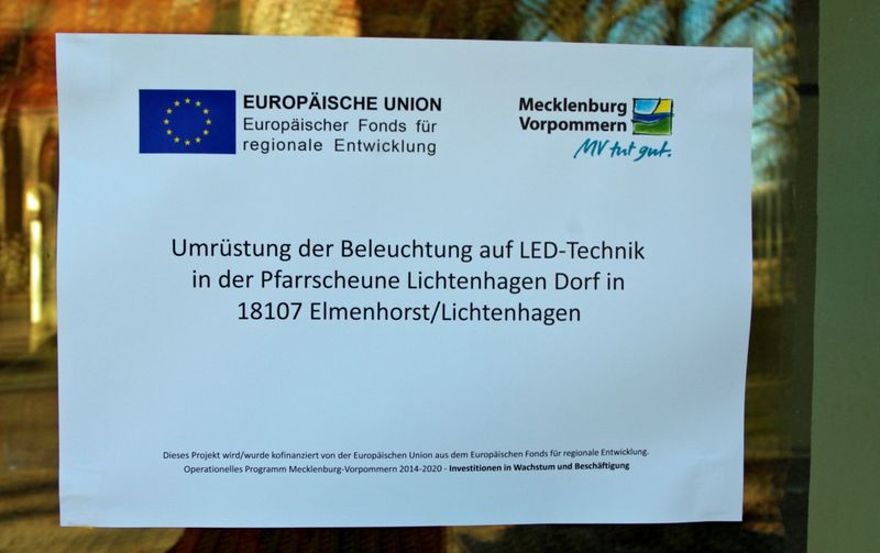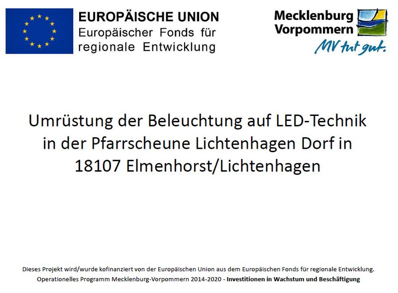 "Umrüstung der Beleuchtung auf LED-Technik in der Pfarrscheune Lichtenhagen Dorf in 18107 Elmenhorst/Lichtenhagen"