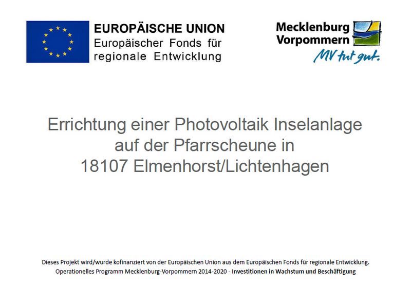 "Errichtung einer Photovoltaik Inselanlage auf der Pfarrscheune in 18107 Elmenhorst/Lichtenhagen"
