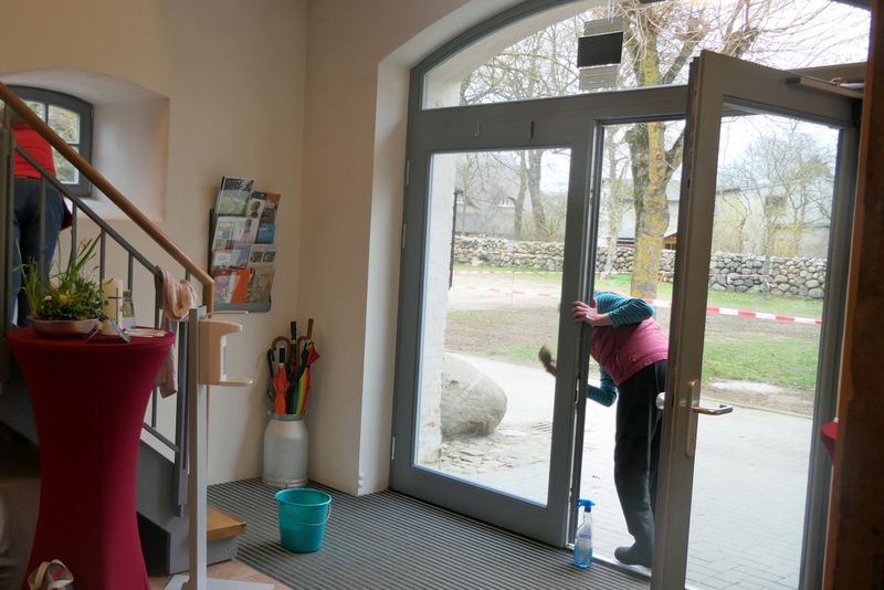 Zum Frühjahrsputz kamen gut 30 Aktive, die viele, viele Arbeiten erledigten. Zu Beginn gab es wieder die Arbeitsschutzhinweise und dann ging es ans Werk: tote Buchsbaumhecken roden, in Elmenhorst Steine transportfähig auf Paletten stapeln, damit sie bei uns wieder eingelagert werden können, alle Gullis reinigen, Baumschnitt und Ästchen sammeln und schreddern, Fensterputzen in der Scheune, Lichterketten abbauen, Spinnweben in der Kirche entfernen, Loch auf dem Dachboden für das Aufhängen des Adventssterns im Altarraum der Kirche sägen, Schaukästen reinigen, Aushub vom Carportbau umlagern und sehr wichtig: wunderbares Frühstück für alle bereiten und zu guter Letzt nach dem Frühstück die Balken im Saal der Scheune umfassend von Staub und Spinnweben reinigen. Herzlichen Dank für alles Mitdenken, Anfassen und Mittun.