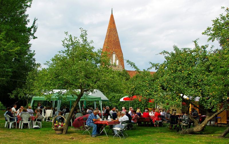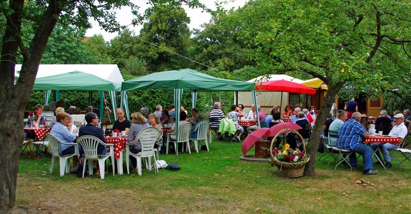 Nun ist es wieder soweit: Ab 2. Juni jeden Donnerstag von 14-17 Uhr kann man frischen, hausgebackenen Kuchen zusammen mit einer Tasse Kaffee oder Tee aus „Fairem Handel“ genießen. Unter den alten Obstbäumen des traumhaft schönen Pfarrgartens können beim Sommersonnenschein Einheimische und Gäste ins Gespräch kommen, vielleicht ja über die schöne alte Dorfkirche, die an diesen Tagen gleichzeitig geöffnet sein wird. Aber keine Angst, auch im unwahrscheinlichen Fall eines Regentages wird das Café geöffnet sein, dann allerdings im Gemeinderaum des Pfarrhauses. Viele ehrenamtliche Helfer machen dieses Angebot der Begegnung möglich.