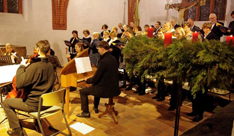 Auf dem Programm stand die Kantate BWV 61 "Nun komm der Heiden Heiland" von J. S. Bach, die Kantate "In dulci jubilo" von Dietrich Buxtehude und weitere Werke des Barock. Neben der Kantorei und Instrumentalisten der HMT war Julia Marie Kähne als Sopransolistin zu erleben.