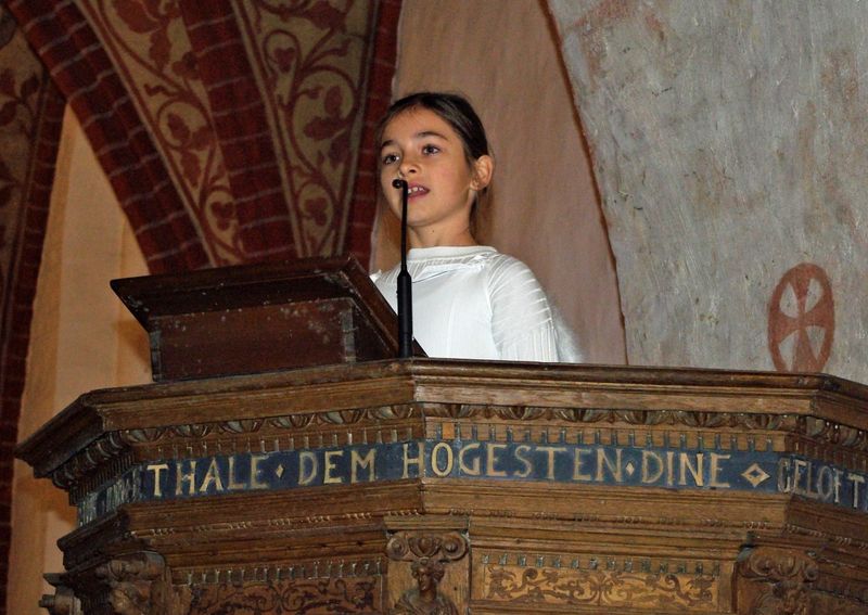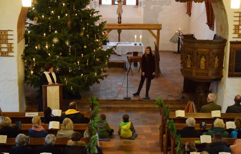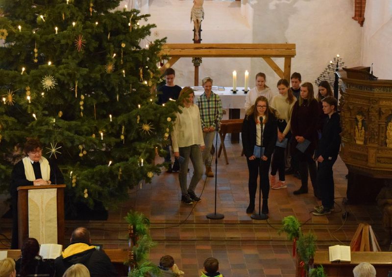 Die Gemeinde konnte sich nicht nur an der Spielkunst der Jugendlichen erfreuen, sondern auch an acht Weihnachtslieder, die im Gottesdienst gesungen wurden. So wurde es auch ein Fest für alle, die gern die vertrauten Weisen singen.