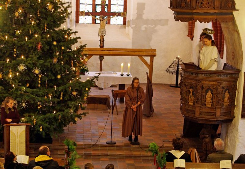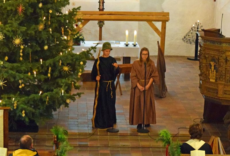In der ersten und zweiten Christvesper am Heiligen Abend führten Kinder aus den Christenlehregruppen ein Krippenspiel auf. Maria, Joseph, Hirte, Engel, der Kaiser und ein Ausrufer waren dabei. Und natürlich der Stall von Bethlehem.