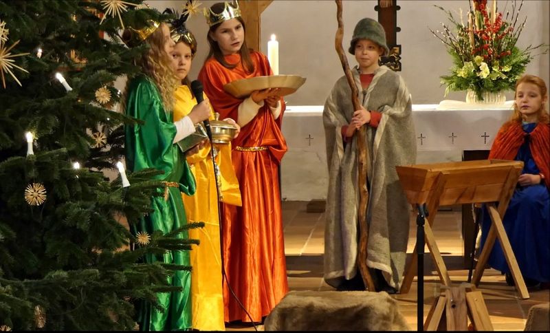 Zwei Christenlehregruppen haben jeweils das gleiche Krippenspiel geprobt. Die Montags- und Mittwochsgruppe übten aus Coronagründen extra und auch die Gottesdienste wurden unter 3G-Bedingungen einen Tag vor dem Heiligen Abend 2021 mit den Familienangehörigen gefeiert. Dabei wurden Videos erstellt, ungeschnitten und ungefiltert (ca. 30 Minuten). Wir konnten uns an den spielfreudigen Kindern, der Sprecherin und der etwas granteligen Frau freuen. Die Videos sind nun offline.