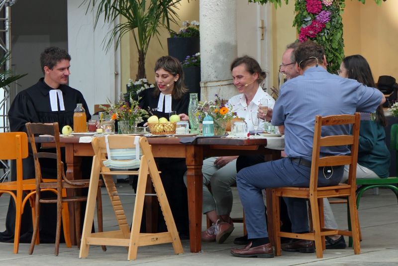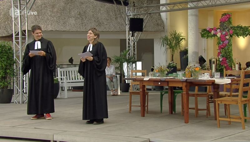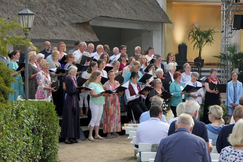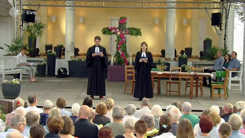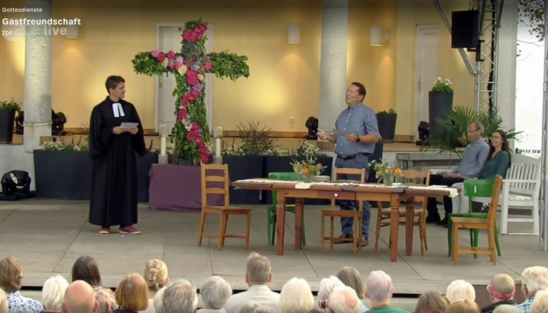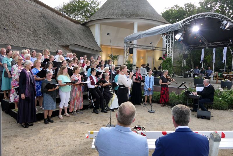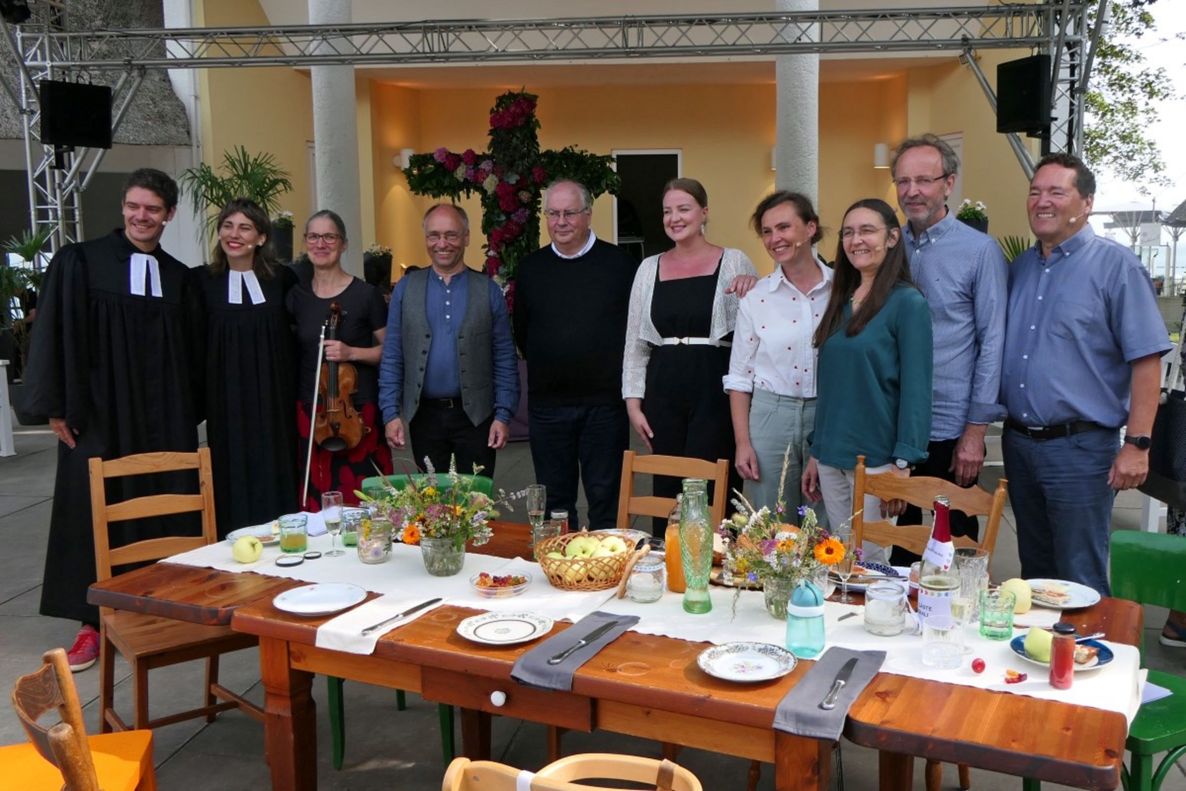 Im ZDF wurde der Gottesdienst direkt übertragen (hier in der Mediathek). In unserer Dorfkirche fiel der Gottesdienst aus und alle waren eingeladen, zum Konzertgarten nach Kühlungsborn-Ost zu kommen und den TV-Gottesdienst mitzufeiern mit dem Thema "Gastfreundschaft". Ein Jahr Vorbereitung, wie bei den Dankesworten gesagt wurde, hat sich gelohnt. Ein ringsum gelungener Gottesdienst.