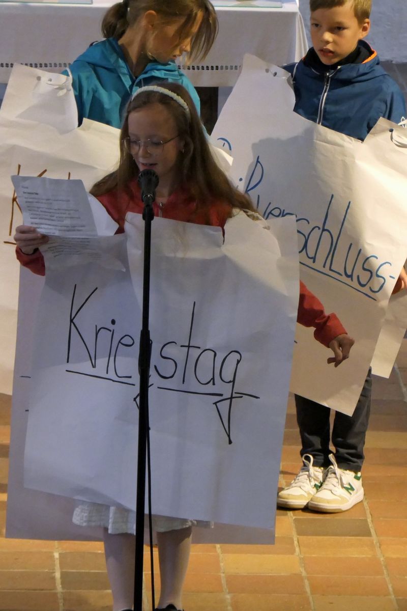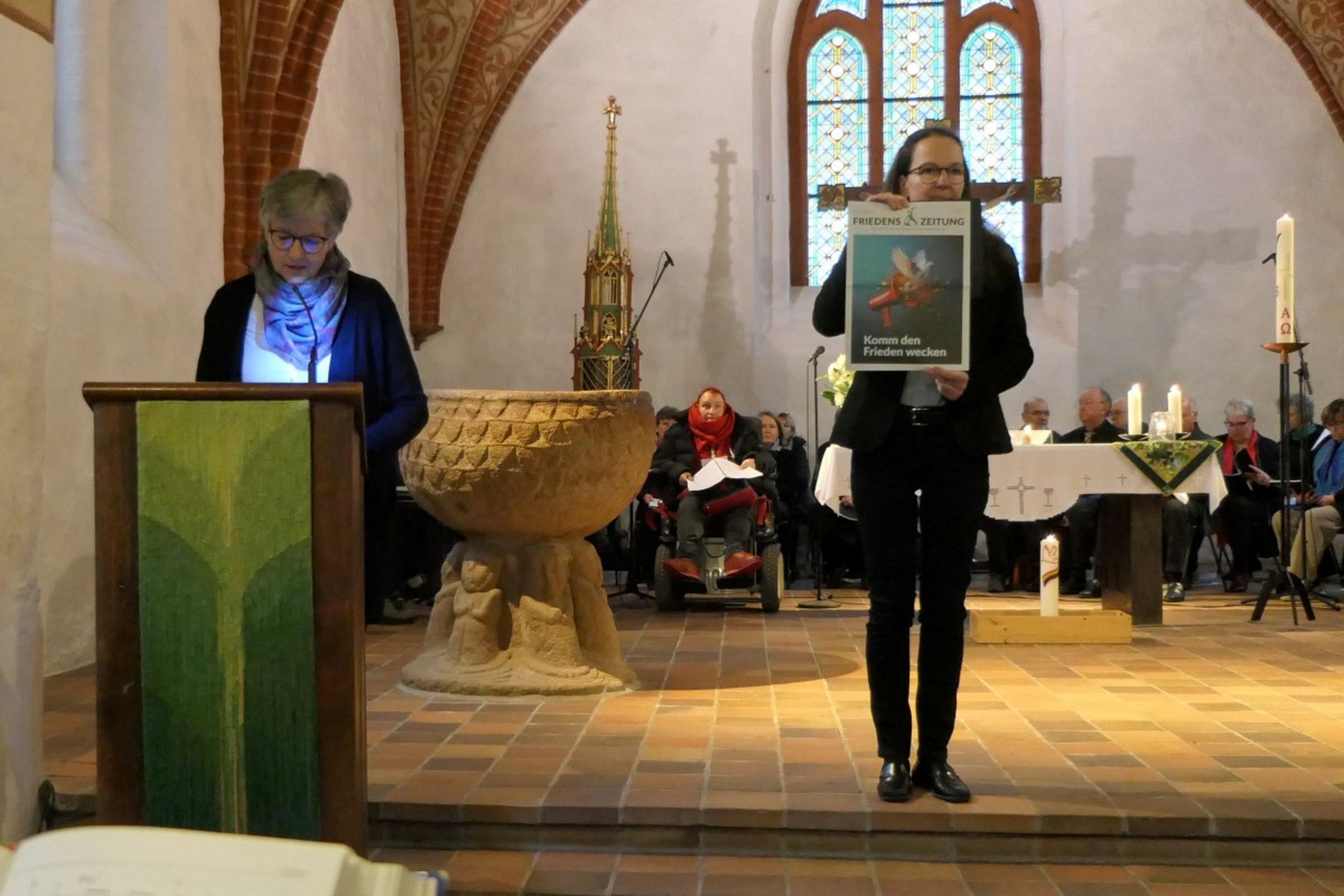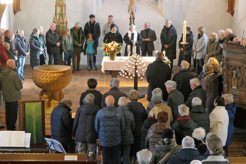 Zu Beginn der Friedensdekade 2025 feierten wir einen Bittgottesdienst für den Frieden. Das Thema in diesem Jahr heißt "Komm den Frieden wecken". Mit dem Entzünden der Friendeskerze, einer Meditation zum Plakat von den ersten Mitgliedern der neuen Lektorengruppe, Kerstin Fuhrer, Doris von Dorrien und Jörg Oetjens, der Friedenspredigt und dem Gospelchor mit vier Liedern feierten wir einen schönen Gottesdienst.
