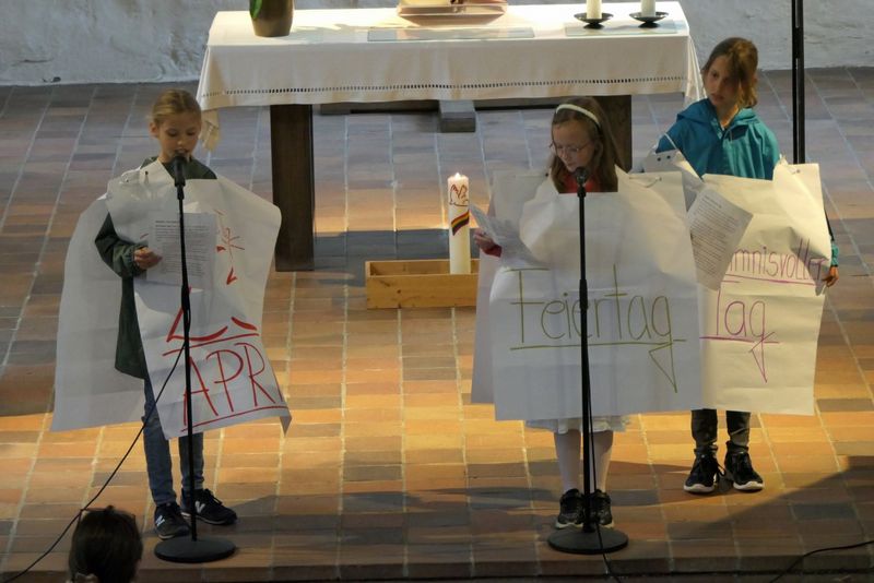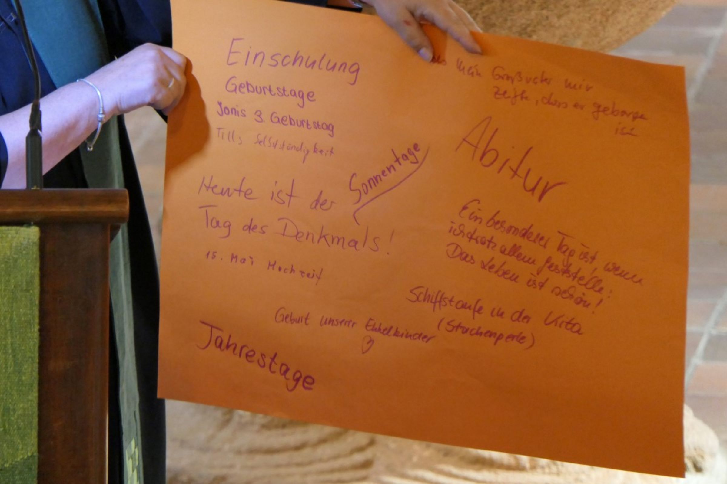 Am Sonntag feierten wir den Gottesdienst zum Schulbeginn in unserer Kirche. Mit dem Lied „Jeder Tag hat sein Geheimnis“ begrüßten vier Kinder die Kleinen und Großen aus der Gemeinde und setzten damit das Thema des Gottesdienstes. Ein kurzes Anspiel zum Inhalt vom Musical „Der kleine Tag“ stimmte uns ein, in drei Gruppen wichtige Tage in unserem Leben zu benennen. Im Anschluss stellten wir die Ergebnisse allen Gottesdienstbesuchenden vor. Jedes Kind wurde gesegnet für die erste Klasse bzw. das neue Schuljahr und auch für das neue Kindergartenjahr.