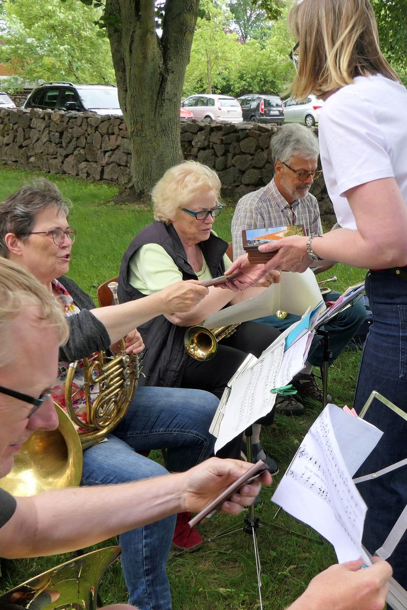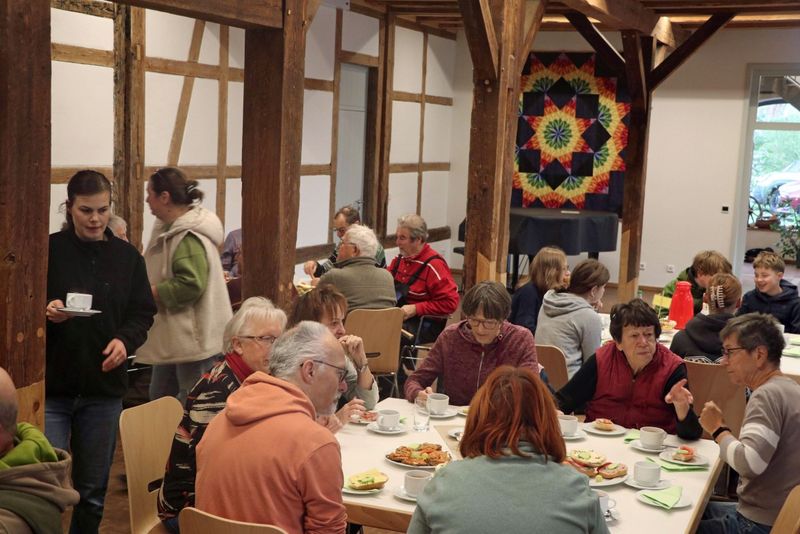 Im Frühjahr 2015 wurde von Hans-Joachim Engel die Männergruppe gegründet. Sie ist seitdem für alle technischen und handwerklichen Dinge in der Kirchengemeinde und insbes. beim SommerCafé immer zur Stelle. Mit großem Engagement, Können und Verantwortung sorgt die Gruppe fürs Gelingen vieler Veranstaltungen wie Martinsfest, Adventsfeier mit der Kommune, Aufstellen des Weihnachtsbaums in der Kirche und natürlich des SommerCafés mit dem Verkaufspavillon, den Zelten, Tischen und Stühlen. Der Frühjahrs- und Herbstputz gehört für die Fachleute auch dazu. Mit großem Applaus, einer Rose und bedrucktem Zollstock wurde ihnen gedankt. Alle Männer sind zum gemeinsamen Bowlen incl. Essen am Donnerstag, 5.6.2025, eingeladen. Als Gruß an die Männergruppe probte Kantor Andreas Hain mit einem kleinen Männerchor drei Lieder, die zu Gehör gebracht wurden und viel Anklang fanden.