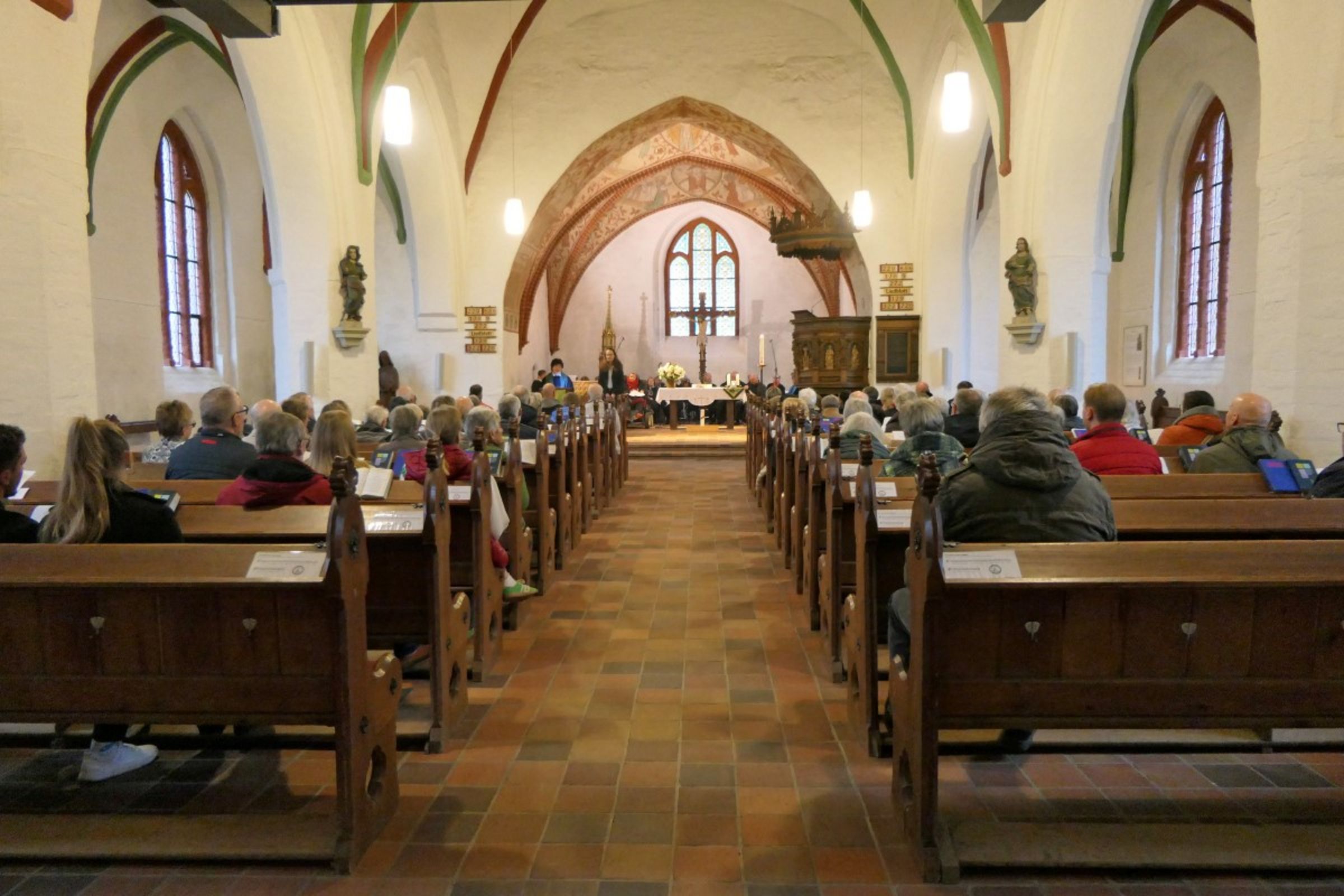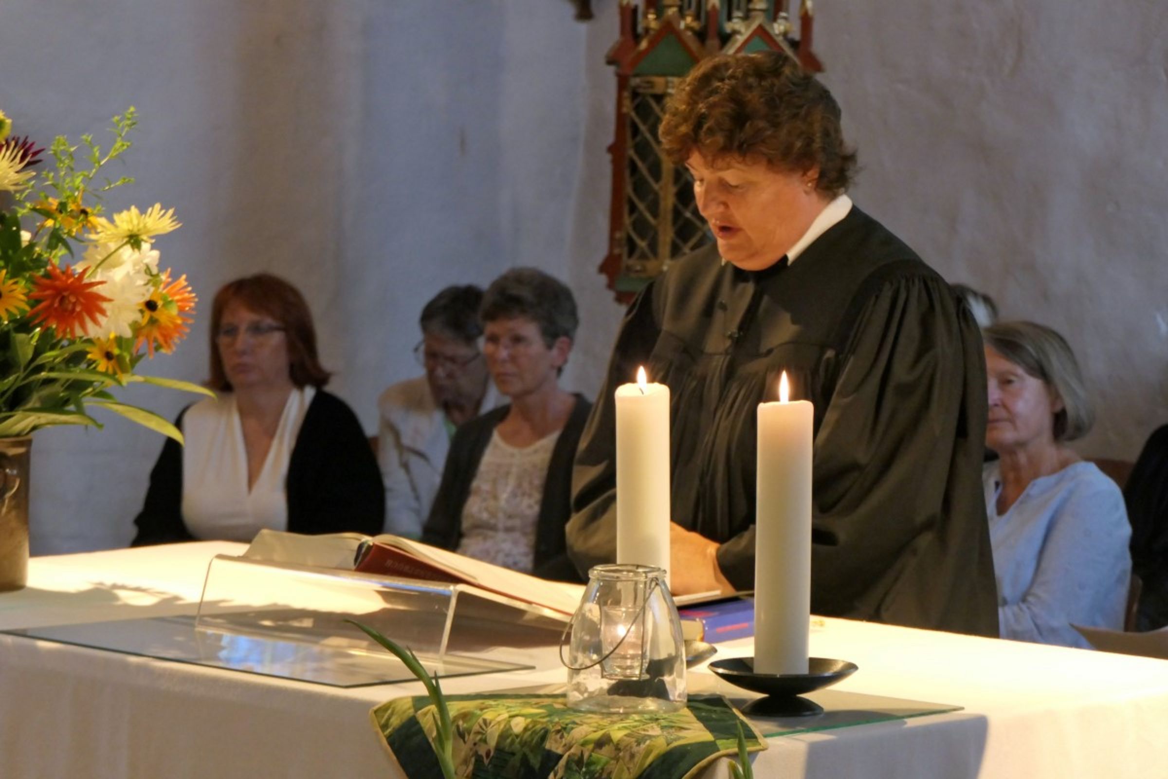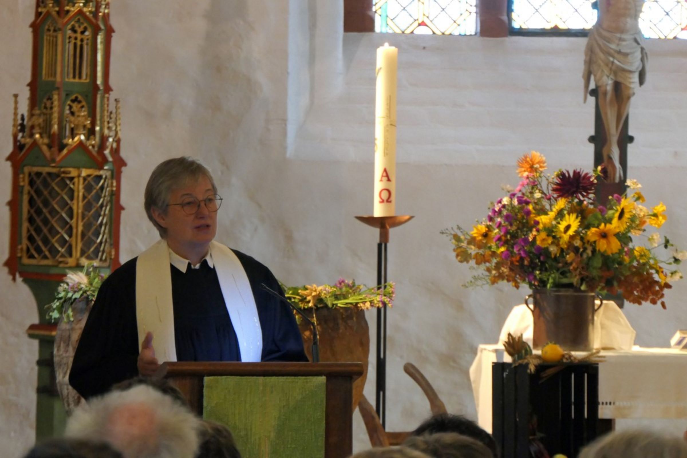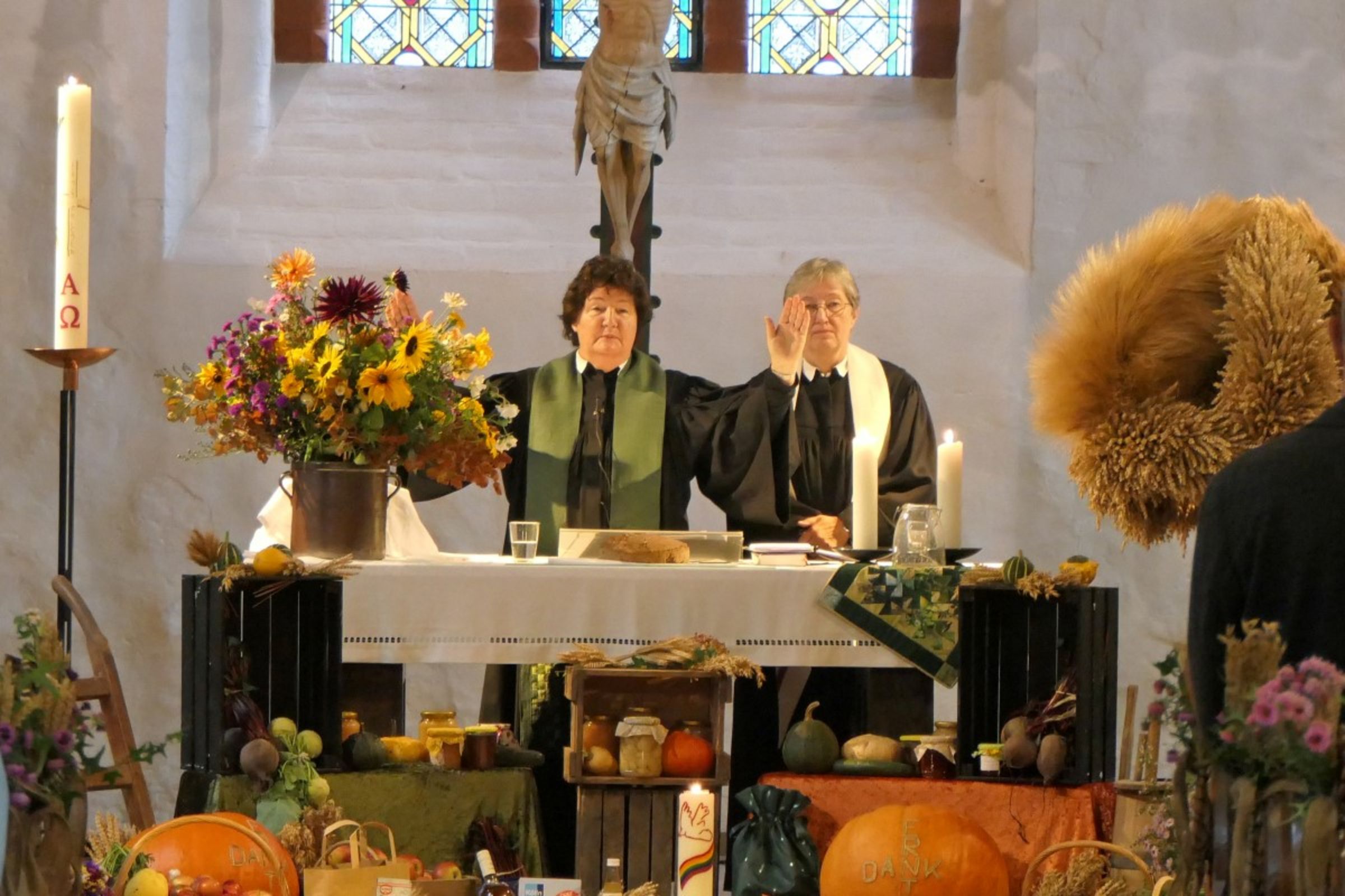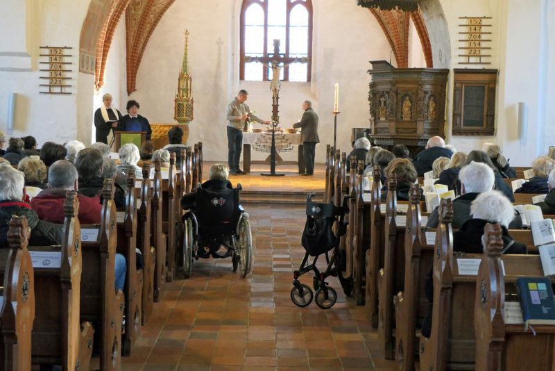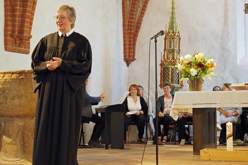 In der festlich geschmückten Dorfkirche feierten wir einen Abendmahlsgottesdienst zum Erntedankfest. Die Predigt hielten drei Kirchenälteste Brigitte Kollmorgen, Peter Erben und Steffen Jahncke mit sehr persönlichen Worten zum Thema "Mut", gemeinam mit Pastorin Uta Möhr. Die Liturgie und Abendmahl im großen Kreis in der Kirche wurden von Pastorin Anke Kieseler geleitet. Anschließend wurden Grüße aus dem Gottesdienst in etliche Häuser zu Menschen gebracht, die nicht am Gottesdienst teilnehmen konnten.