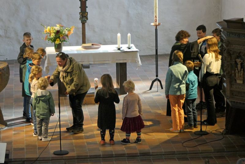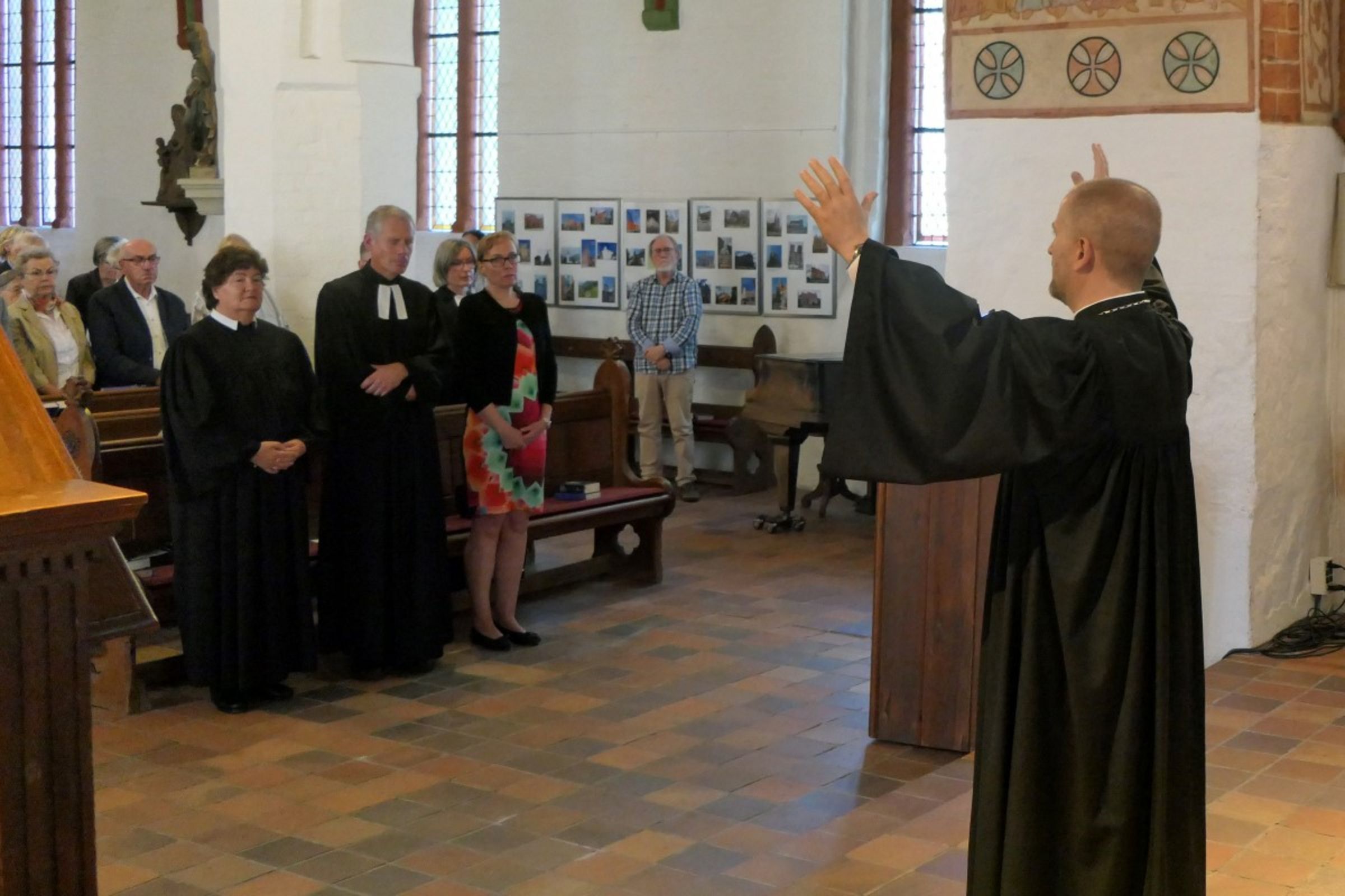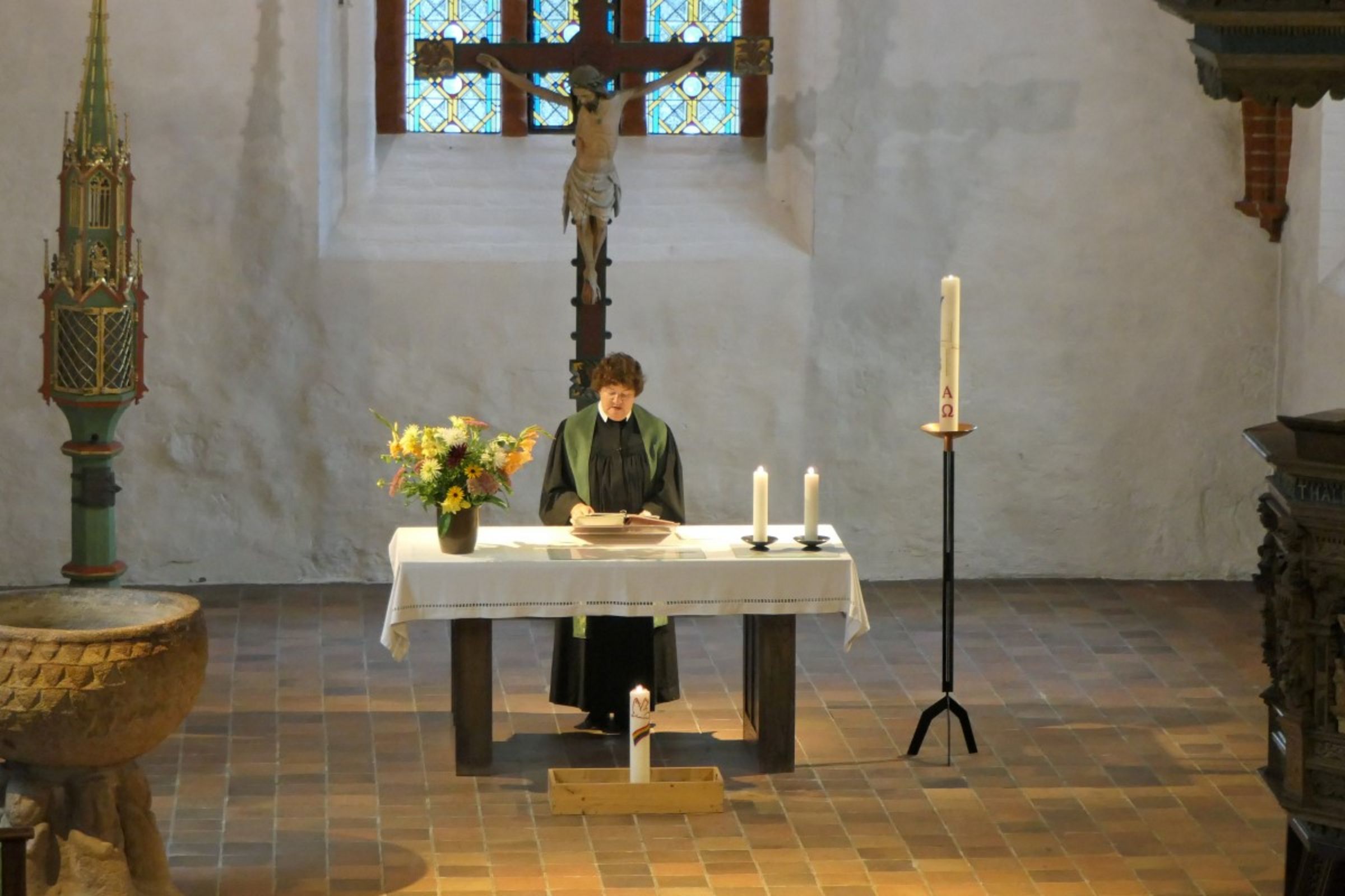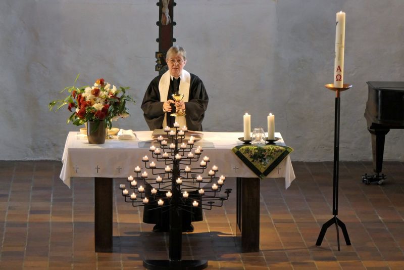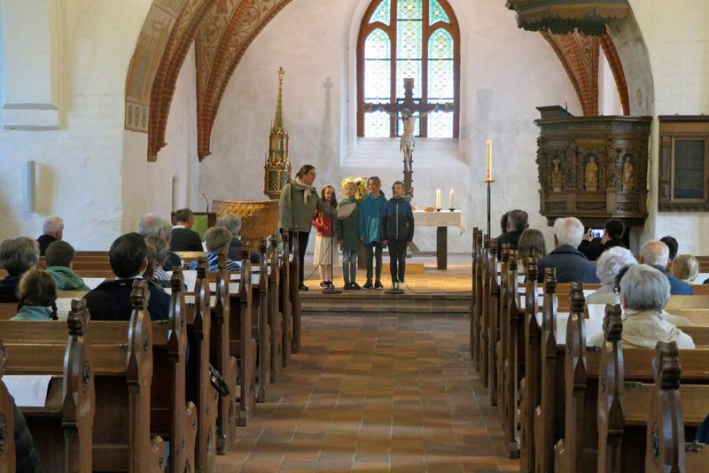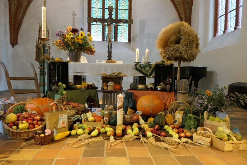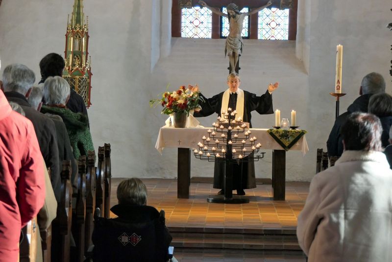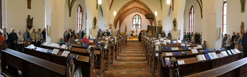 In der festlich geschmückten Dorfkirche feierten wir einen Abendmahlsgottesdienst zum Erntedankfest. Die Predigt hielten drei Kirchenälteste Brigitte Kollmorgen, Peter Erben und Steffen Jahncke mit sehr persönlichen Worten zum Thema "Mut", gemeinam mit Pastorin Uta Möhr. Die Liturgie und Abendmahl im großen Kreis in der Kirche wurden von Pastorin Anke Kieseler geleitet. Anschließend wurden Grüße aus dem Gottesdienst in etliche Häuser zu Menschen gebracht, die nicht am Gottesdienst teilnehmen konnten.