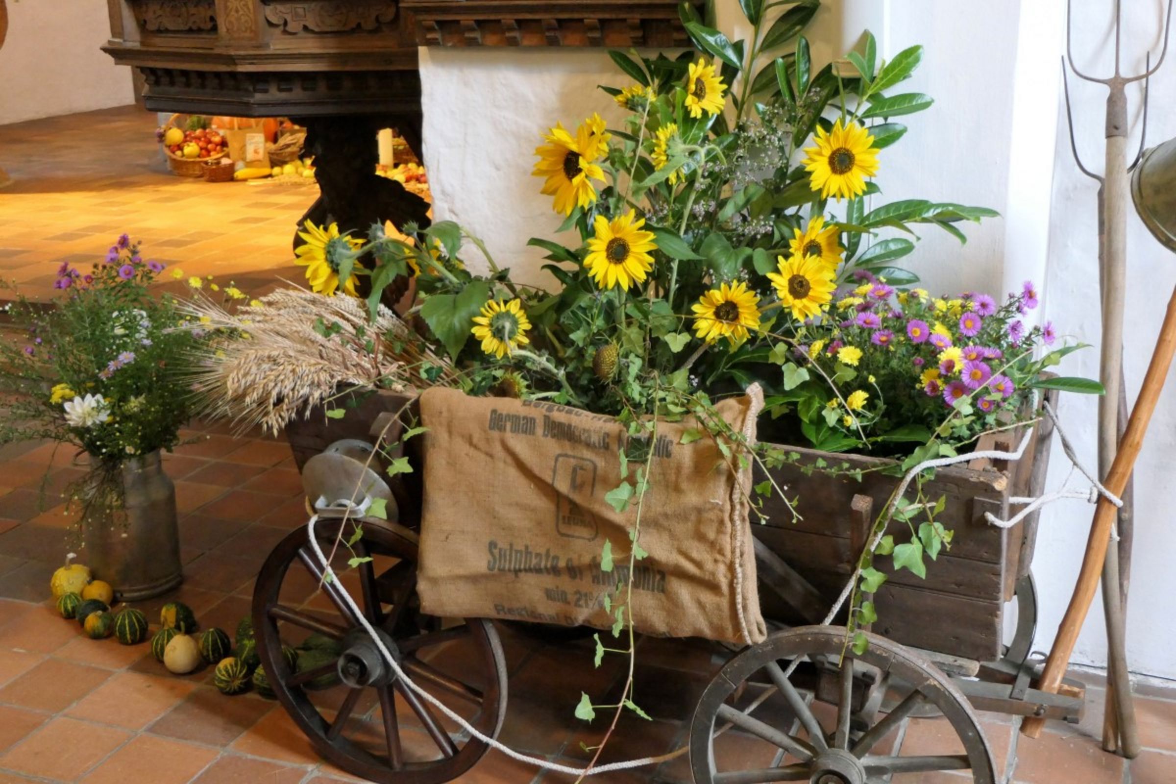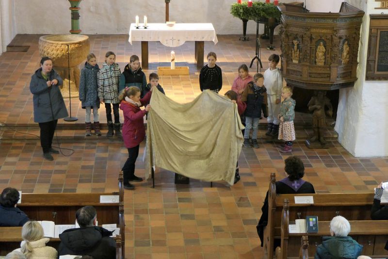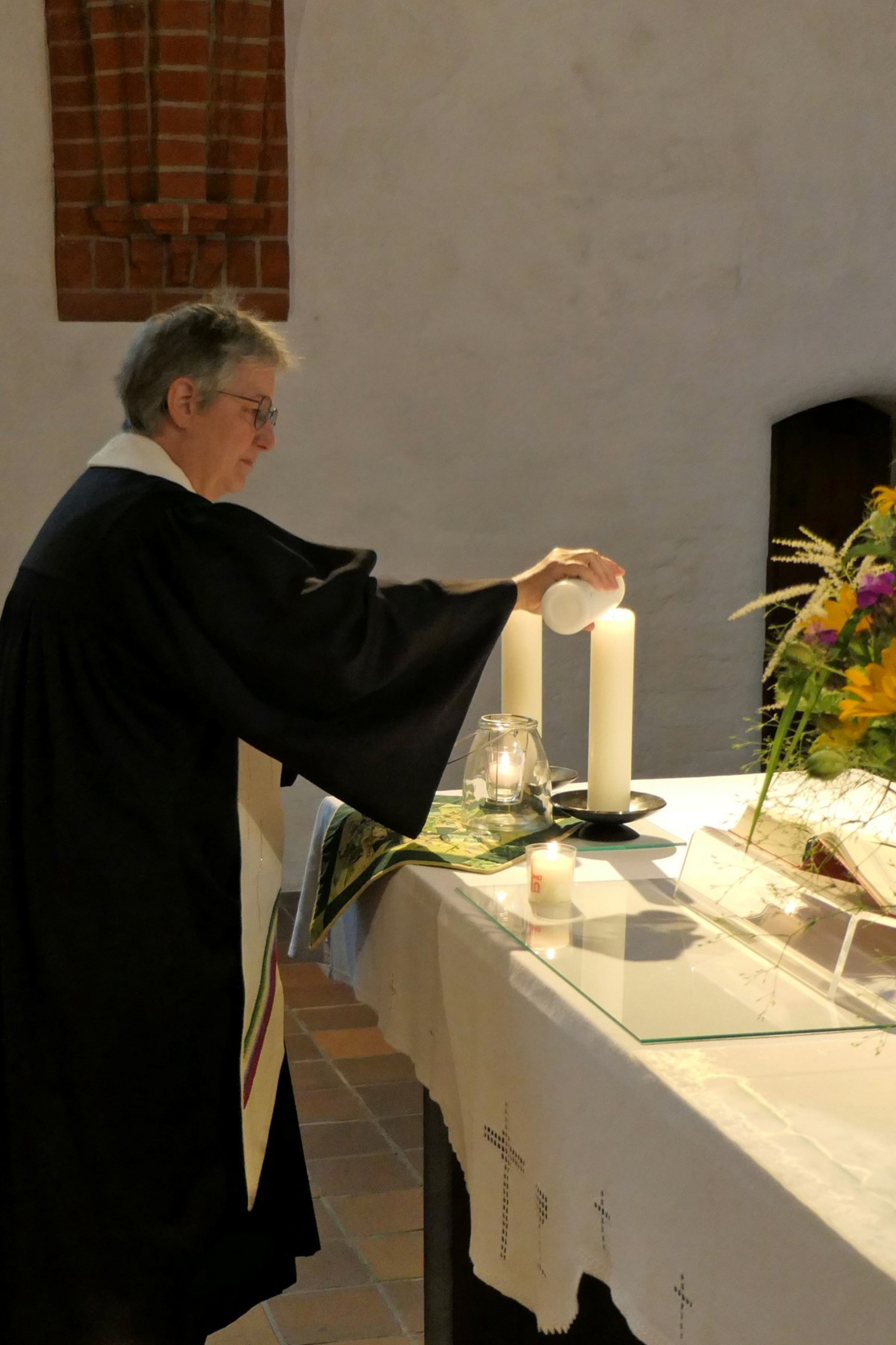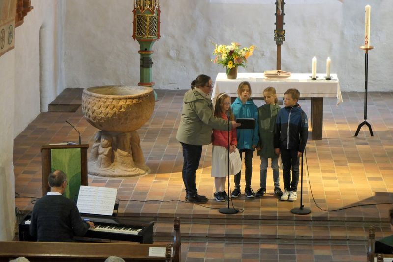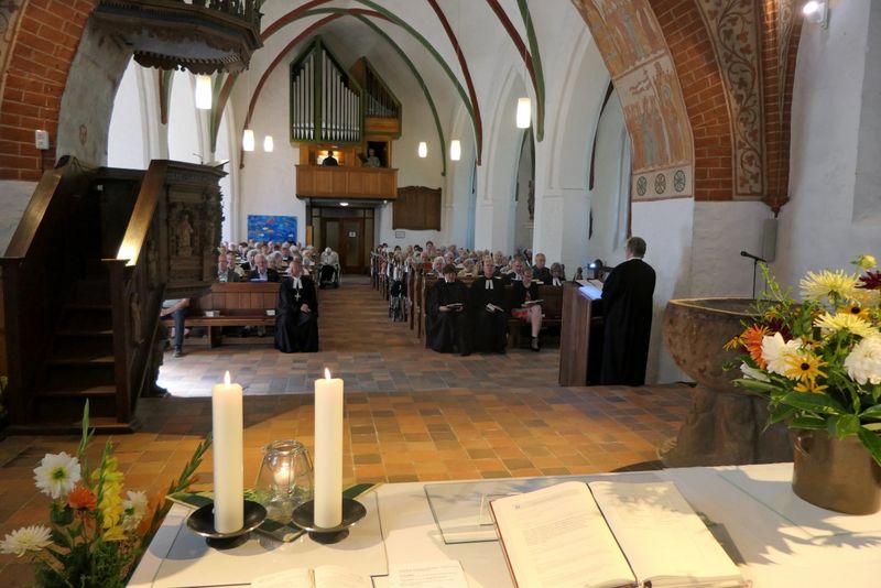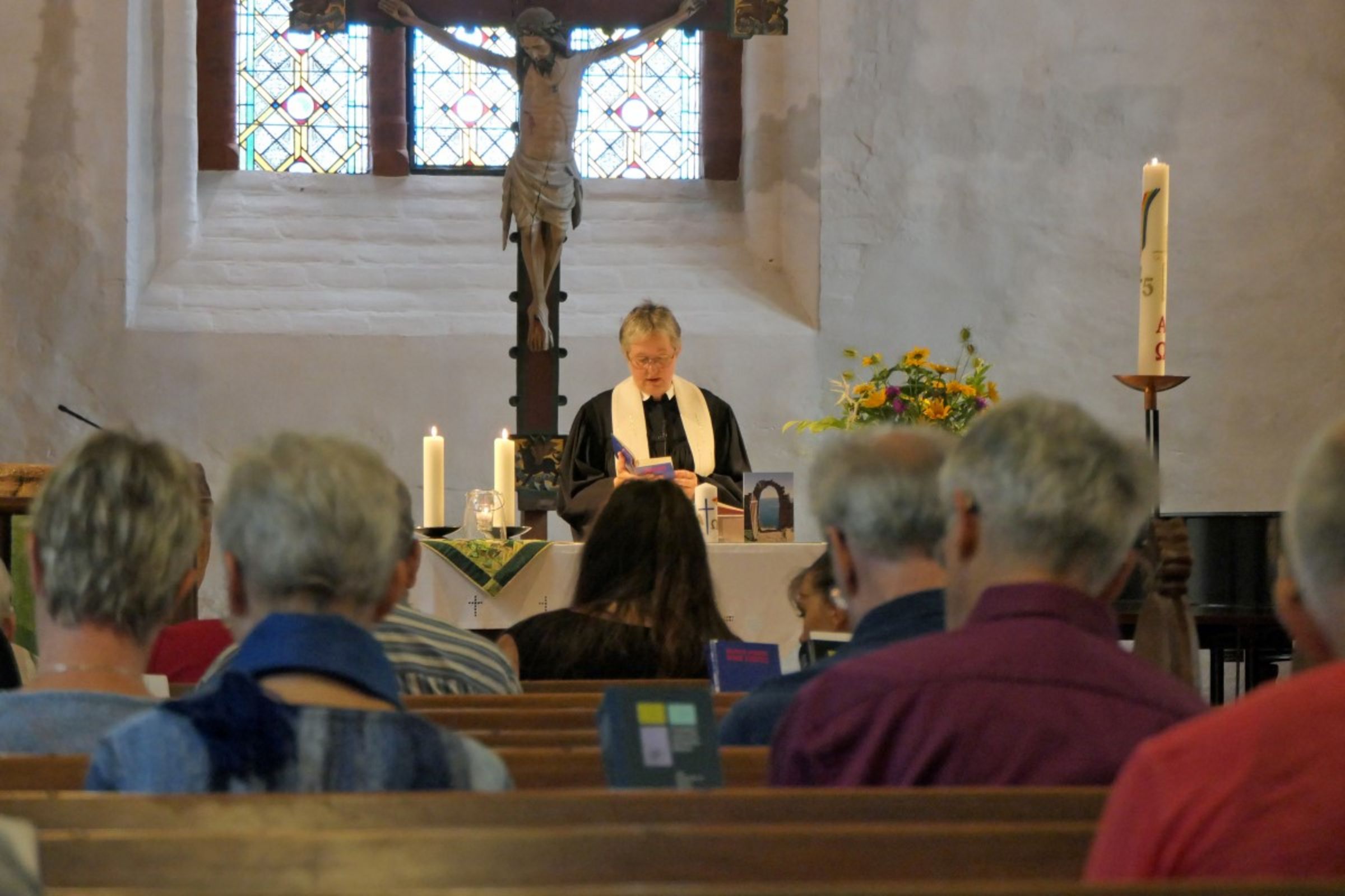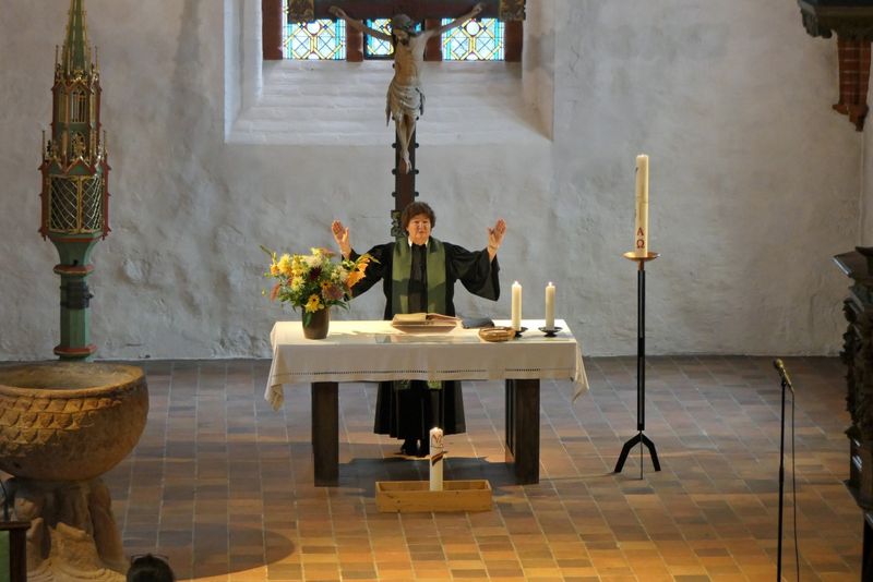 In der festlich geschmückten Dorfkirche feierten wir einen Abendmahlsgottesdienst zum Erntedankfest. Die Predigt hielten drei Kirchenälteste Brigitte Kollmorgen, Peter Erben und Steffen Jahncke mit sehr persönlichen Worten zum Thema "Mut", gemeinam mit Pastorin Uta Möhr. Die Liturgie und Abendmahl im großen Kreis in der Kirche wurden von Pastorin Anke Kieseler geleitet. Anschließend wurden Grüße aus dem Gottesdienst in etliche Häuser zu Menschen gebracht, die nicht am Gottesdienst teilnehmen konnten.