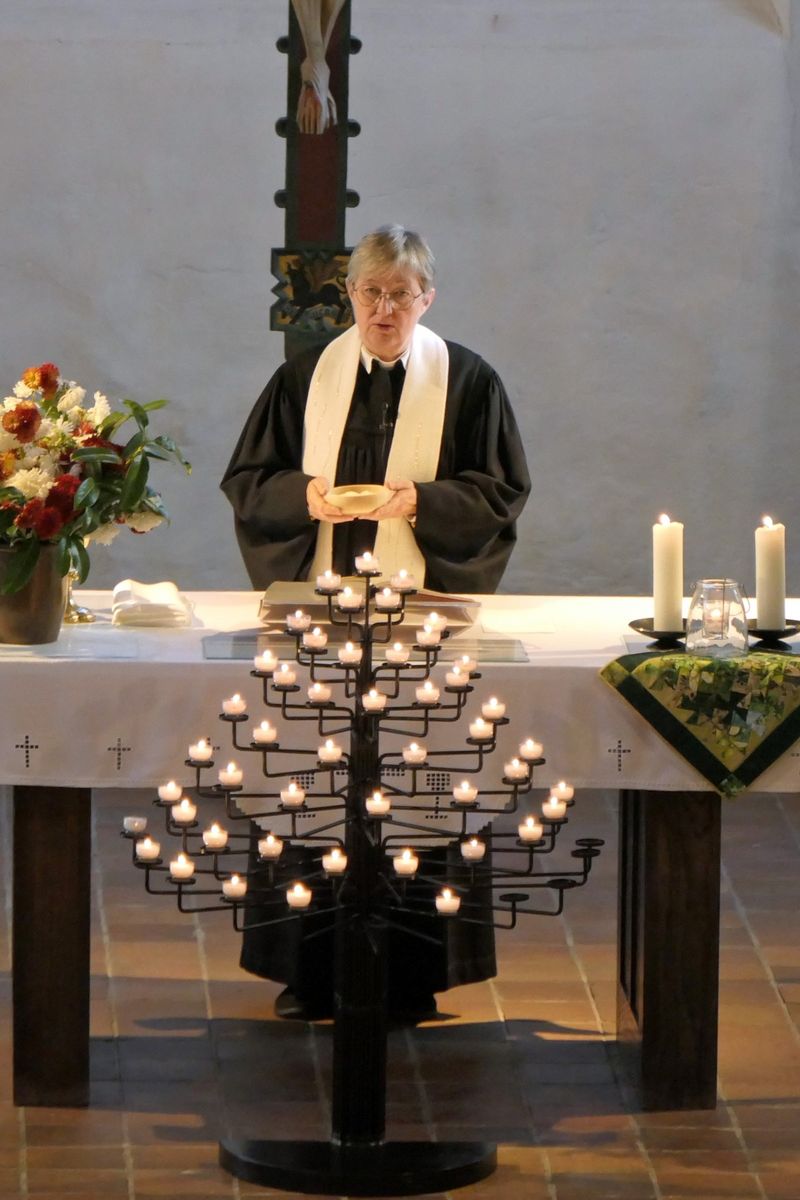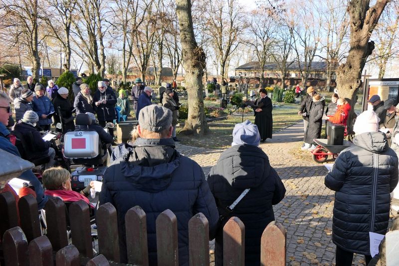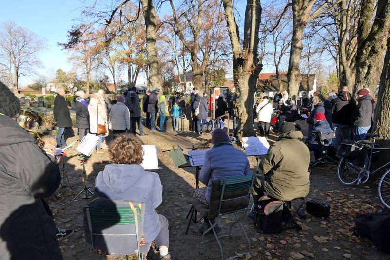 Im Gottesdienst am Ewigkeitssonntag, geleitet von Pastorin Möhr und musikalisch gestaltet von Friederike Lempe und Kantor Andreas Hain, wurden die Namen der Verstorbenen des letzten Kirchenjahres aus unserer Friedenskirchengemeinde verlesen und je eine Kerze angezündet. In der Fürbitte und beim Abendmahl gedachten die Angehörigen und die Kirchengemeinde der Toten. Nach dem Gottesdienst fand, begleitet vom Bläserchor um Frau Bubber, eine Andacht, geleitet von Pastorin Kieseler, mit dem Verlesen aller Namen der Menschen statt, die in den vergangenen 12 Monaten auf dem Friedhof bestattet wurden.