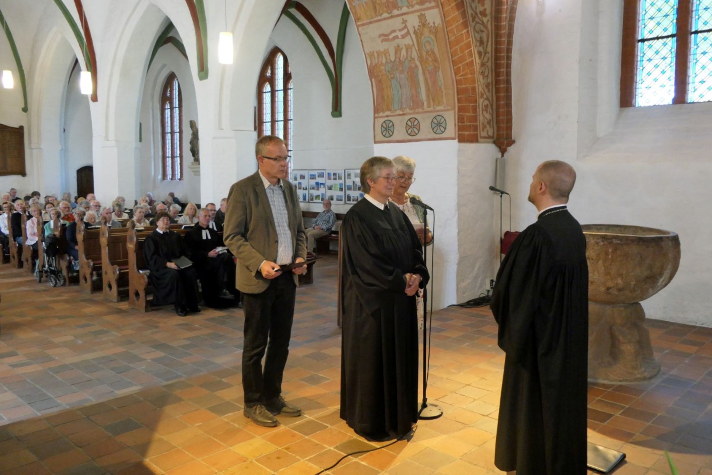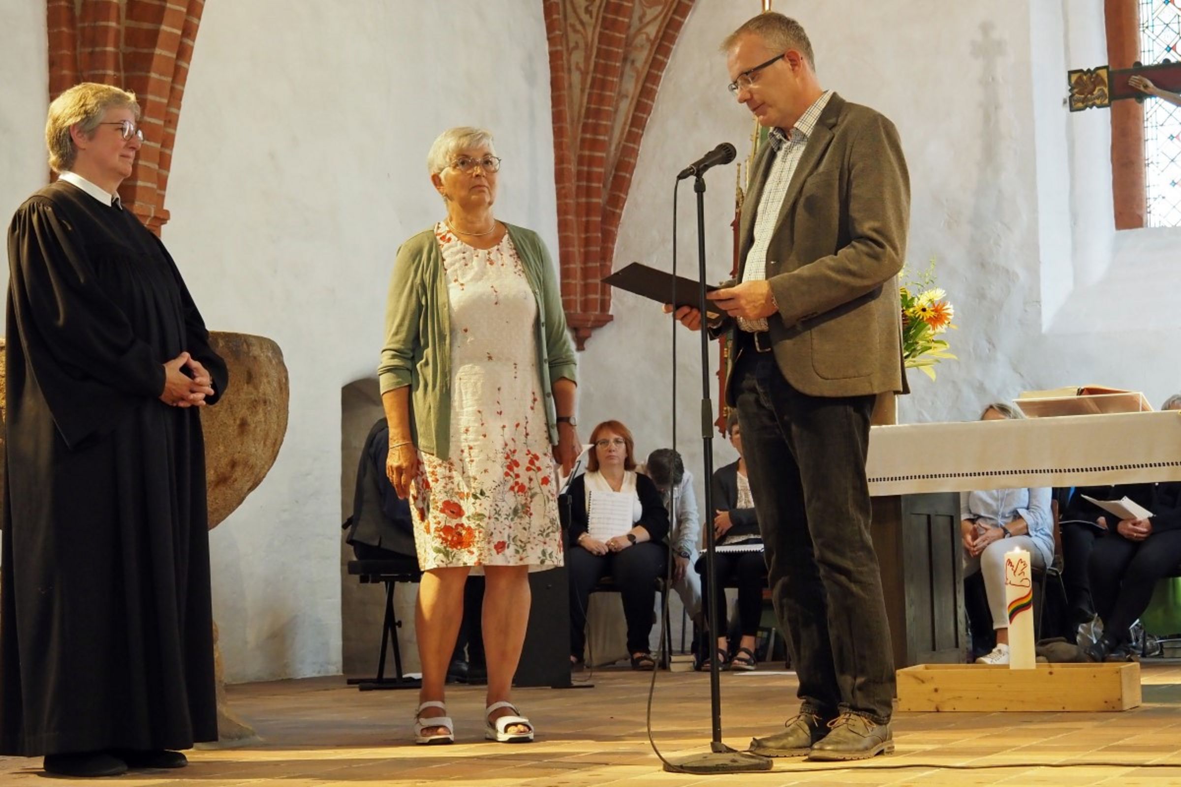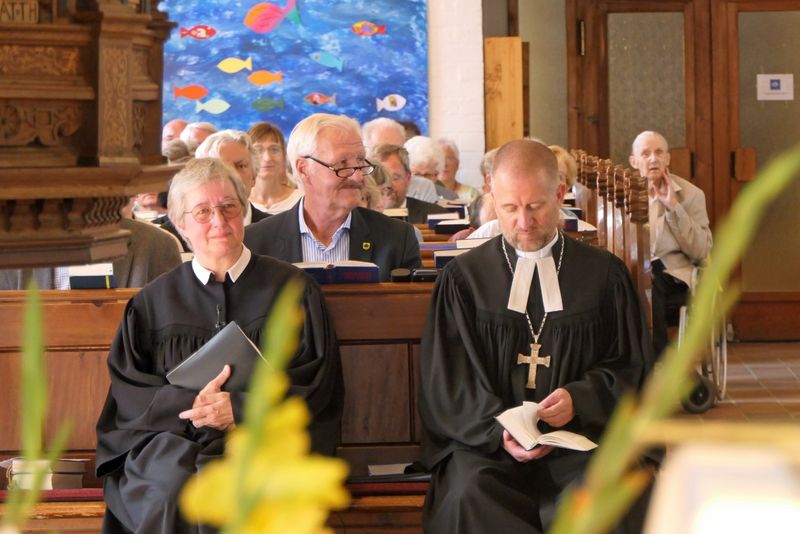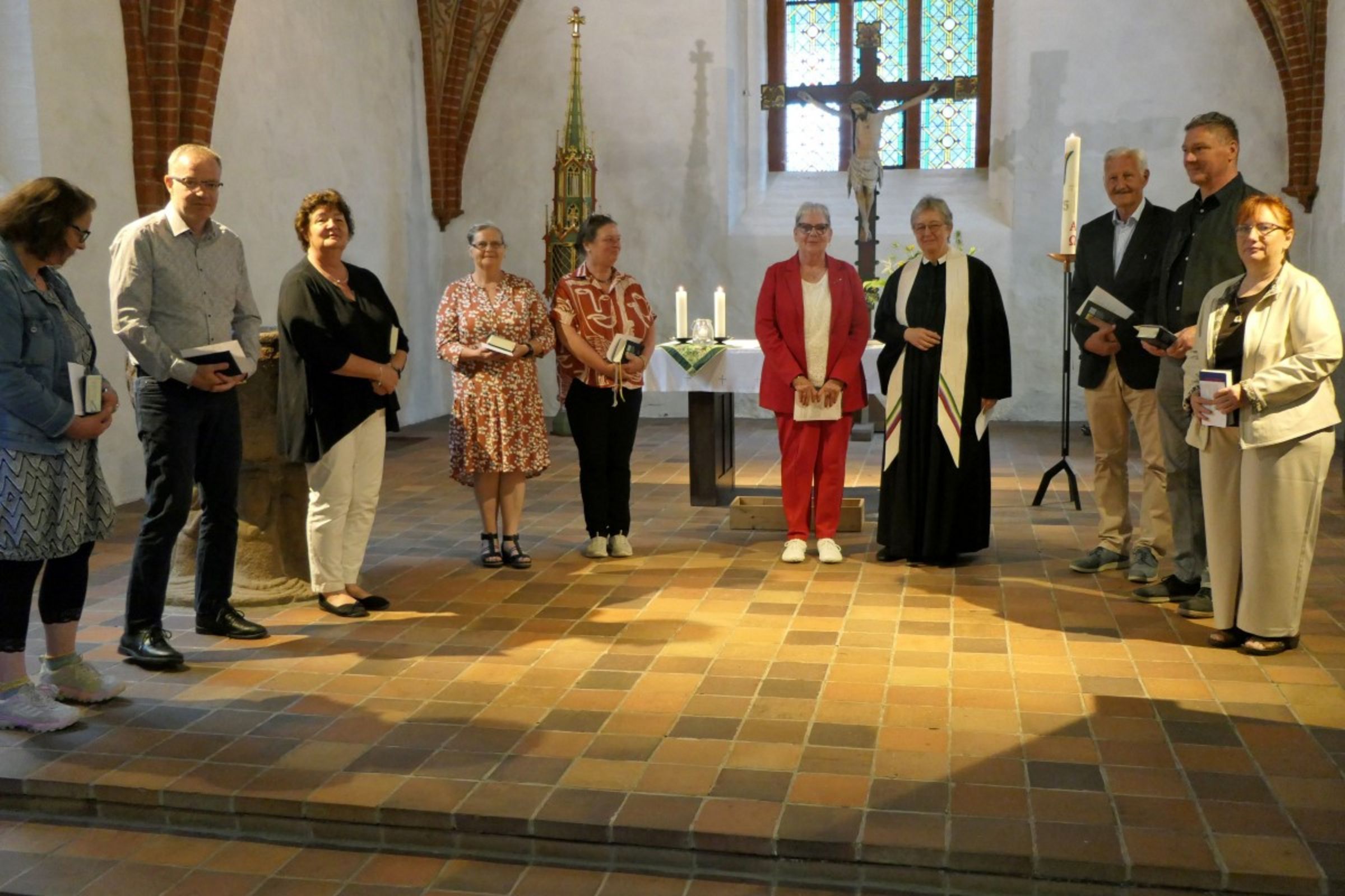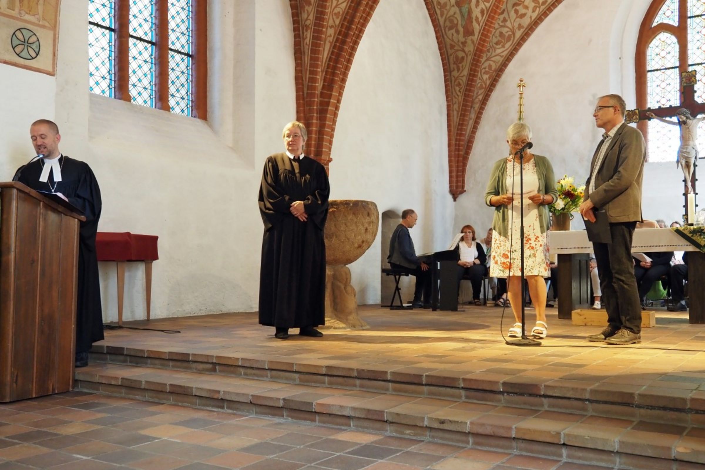 Im Gottesdienst wurden Christel Huhndorf und Gaby Palm auf eigenen Wunsch von den Aufgaben im Kirchengemeinderat entbunden. Ebenso beenden Marion Rasche (Scheunenmanagement) und Brigitte Kollmorgen (Reinigung Scheune) ihren Dienst. Ihnen gehört unser großer Dank für viele Jahre Engagement.