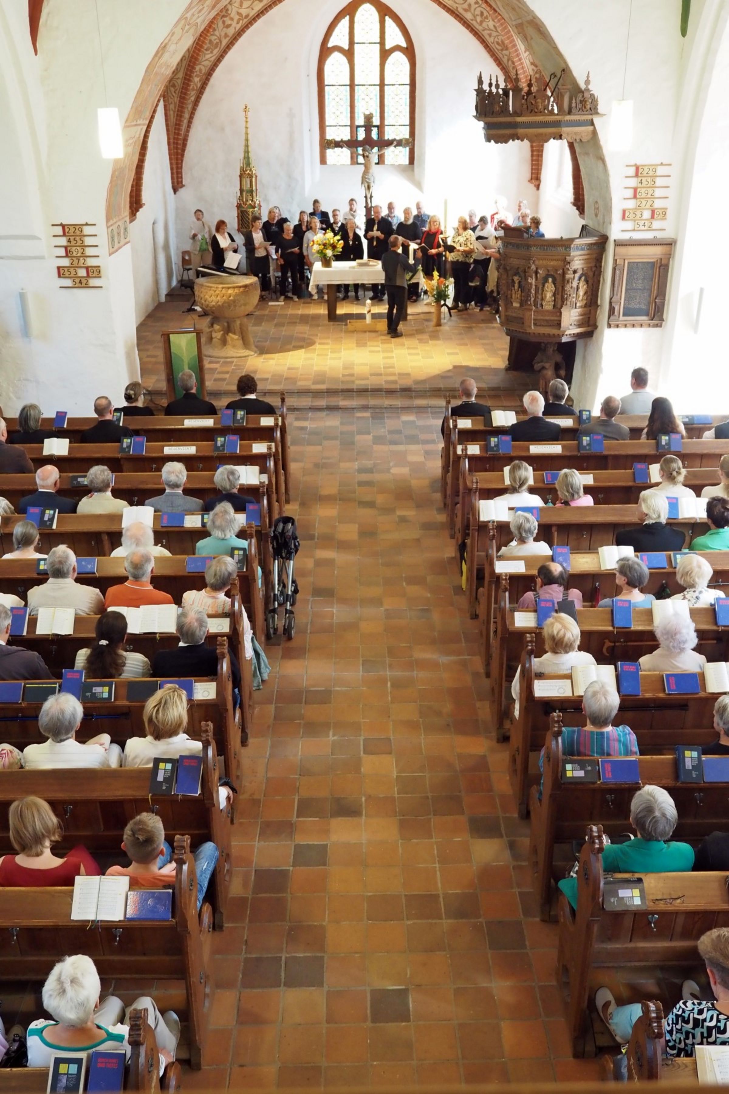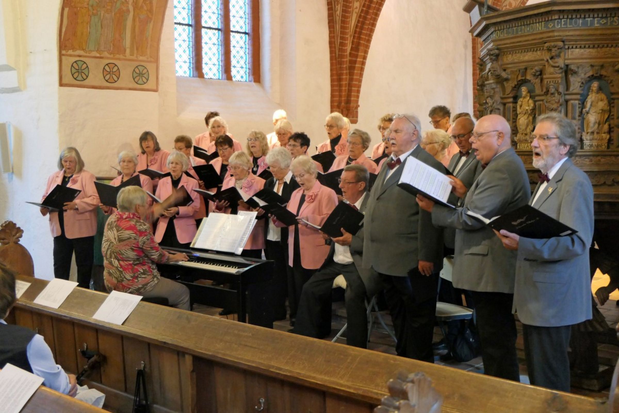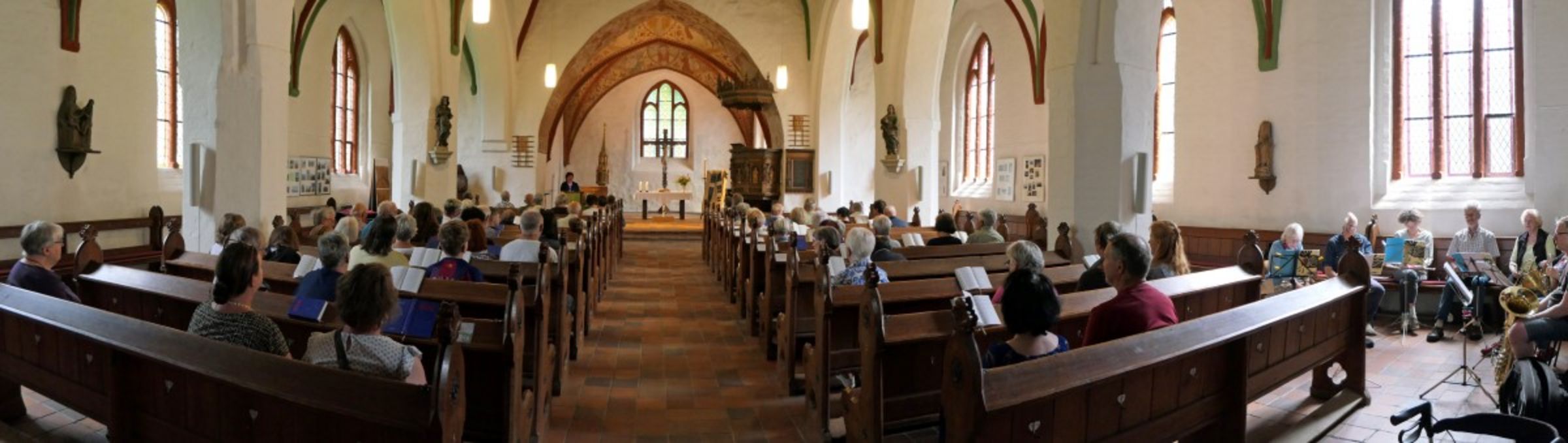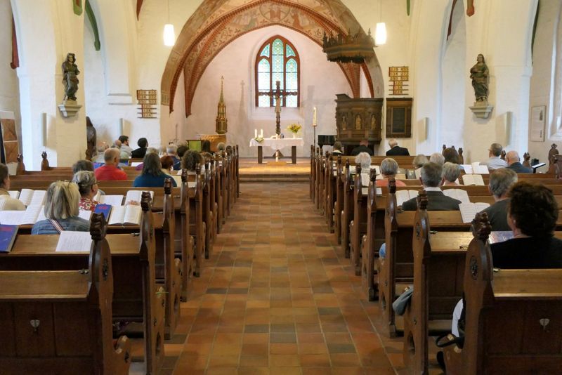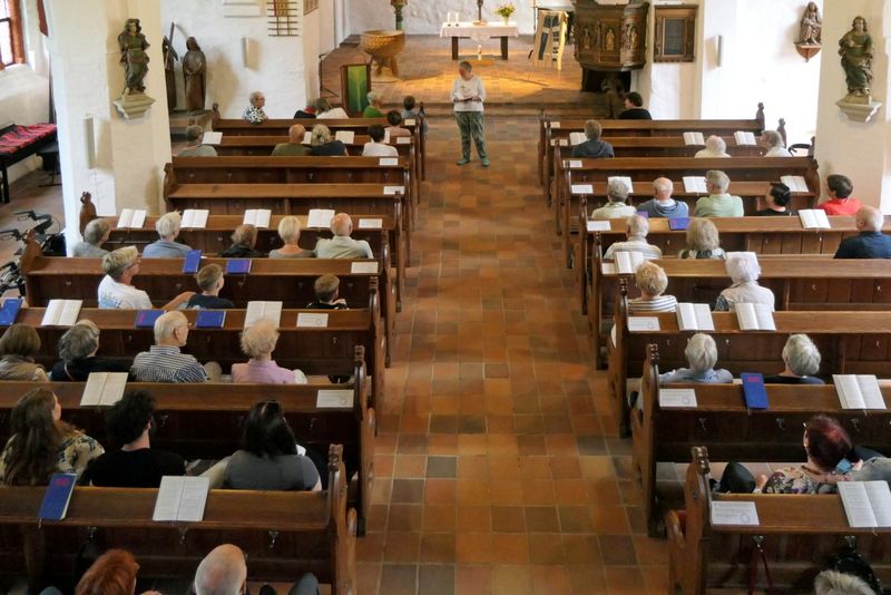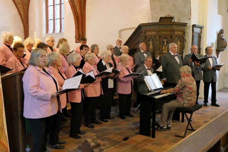 Zum Sonntagsgottesdienst traf der Chor von unserer Partnergemeinde Hamburg-Sasel pünktlich ein. Wir feierten einen schönen runden Trinitatis-Gottesdienst, Begrüßung durch Hans-Peter Stuhr, Vorsitzender vom Partnerausschuss, Predigt Pastorin Uta Möhr und vier Lieder vom Chor plus Kanon mit der ganzen Gemeinde, geleitet von Kirchenmusikerin Katja Richter. Zum großen Kirchenkaffee waren alle in den Saal der Scheune eingeladen, bevor es für den Chor weiter ging nach Bad Doberan. Herzlichen Dank fürs Kommen und Singen.