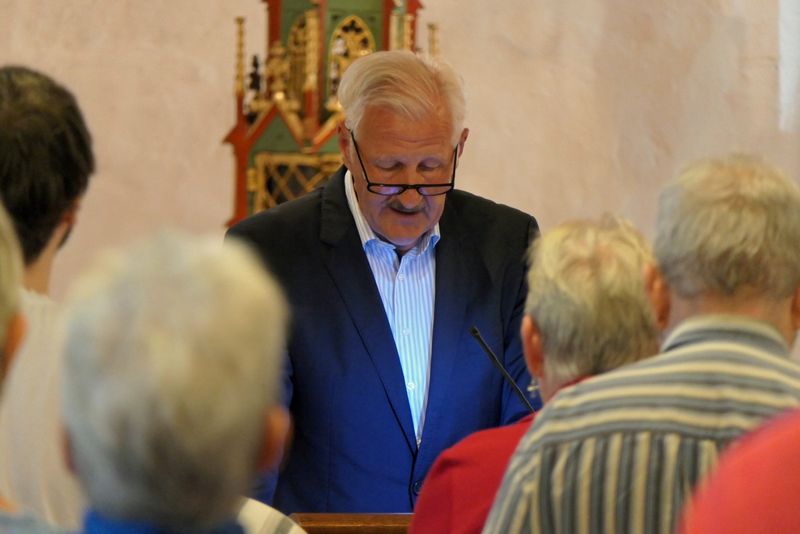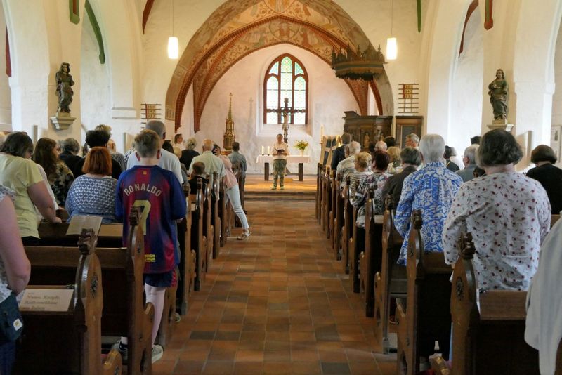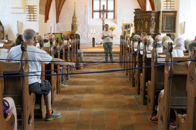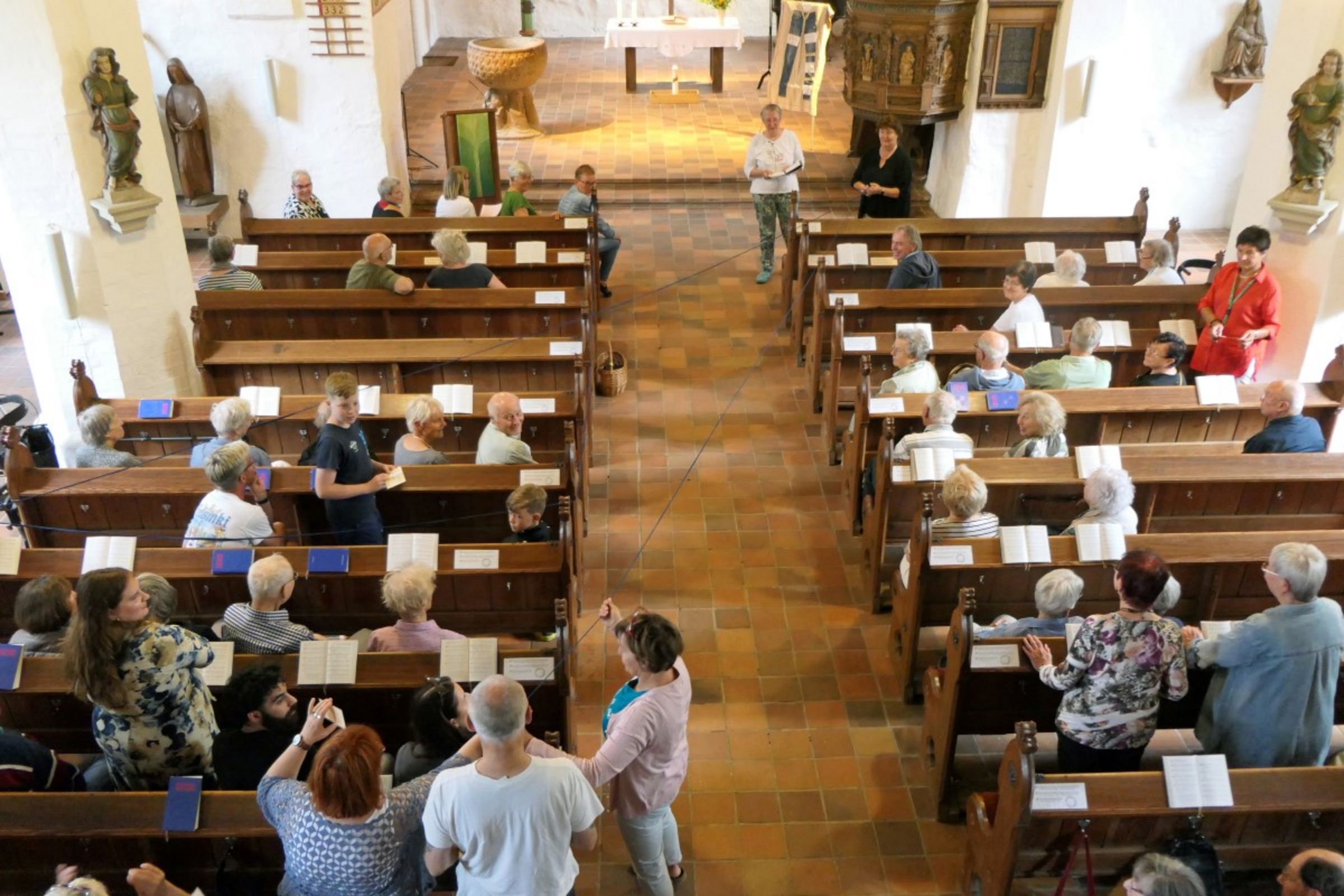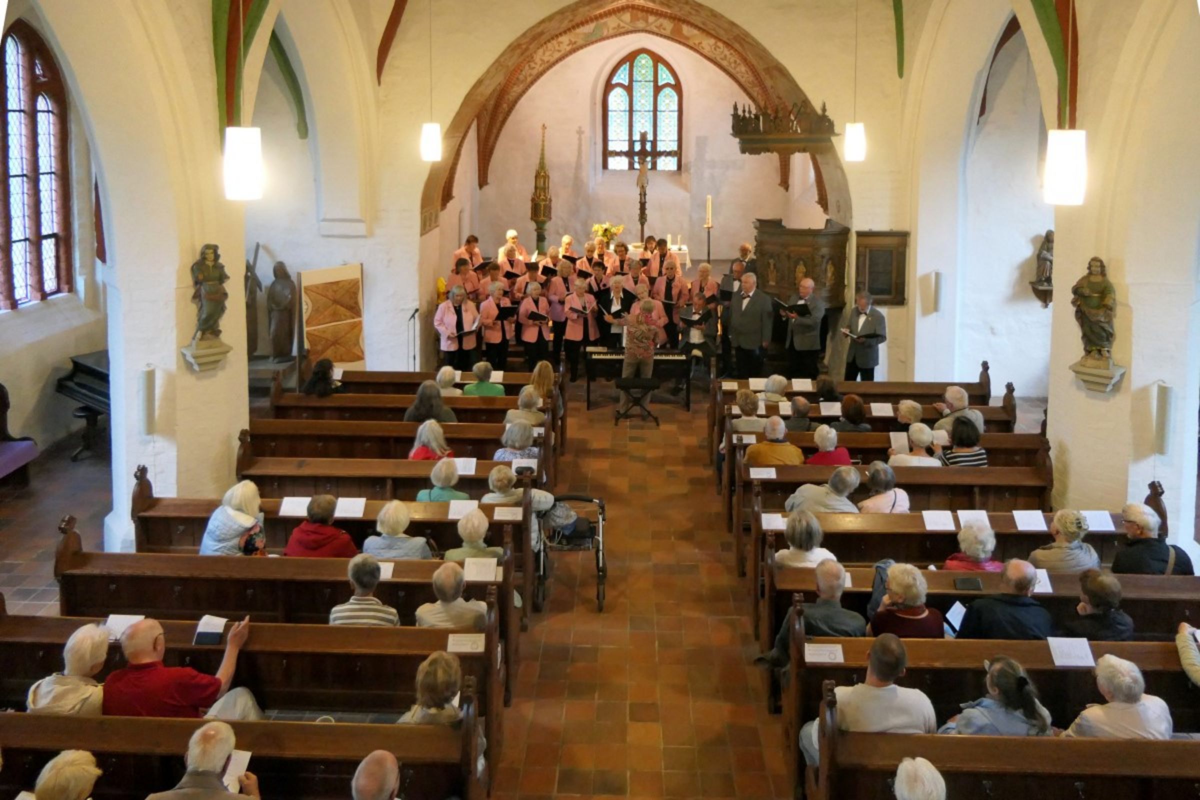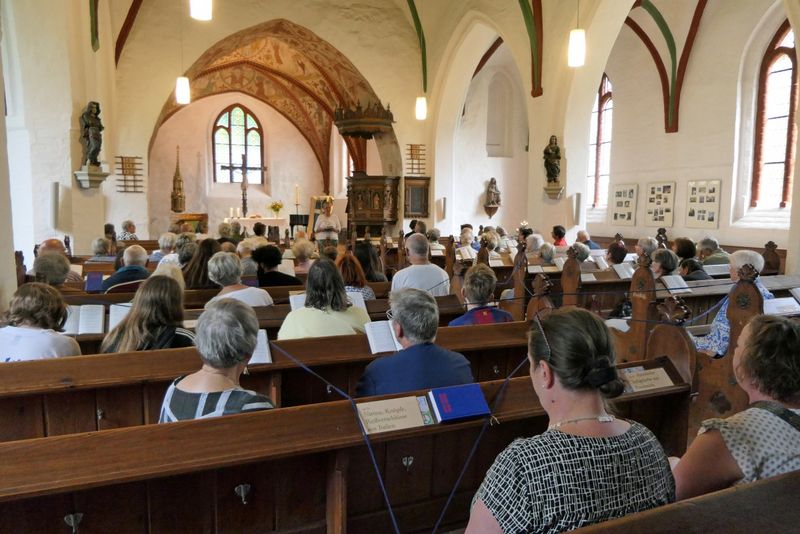 Zum Sonntagsgottesdienst traf der Chor von unserer Partnergemeinde Hamburg-Sasel pünktlich ein. Wir feierten einen schönen runden Trinitatis-Gottesdienst, Begrüßung durch Hans-Peter Stuhr, Vorsitzender vom Partnerausschuss, Predigt Pastorin Uta Möhr und vier Lieder vom Chor plus Kanon mit der ganzen Gemeinde, geleitet von Kirchenmusikerin Katja Richter. Zum großen Kirchenkaffee waren alle in den Saal der Scheune eingeladen, bevor es für den Chor weiter ging nach Bad Doberan. Herzlichen Dank fürs Kommen und Singen.