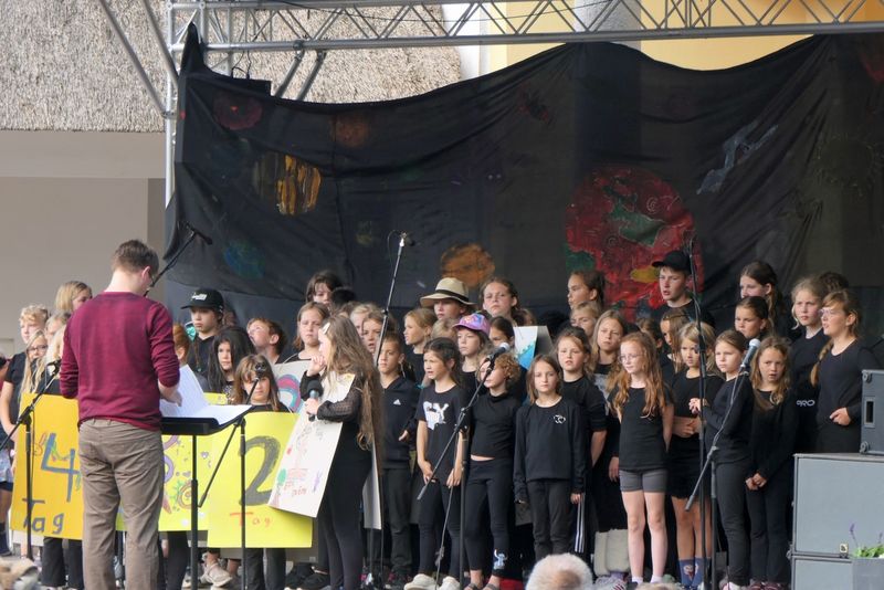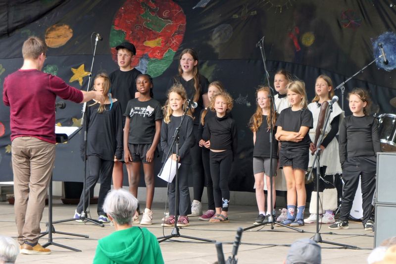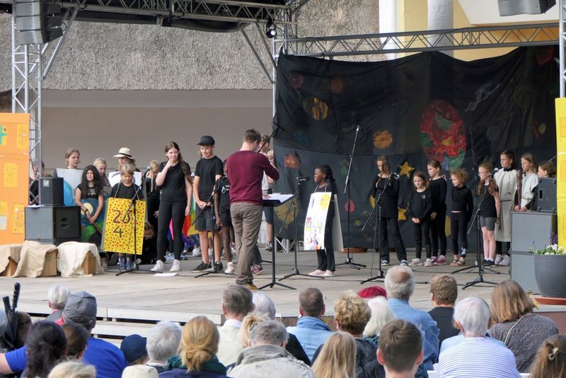 55 Kinder studierten das Musical "Der kleine Tag" von Rolf Zuckowski im Rahmen einer regionalen Sommerfreizeit gemeinsam mit Gemeindepädagog*innen, Kirchenmusiker*innen und Teamern ein. "Der kleine Tag", 23. April, wurde auf einem Lichtstrahl zur Erde und zurück begleitet - eine musikalische Reise voller Fantasie, Freude und Hoffnung.