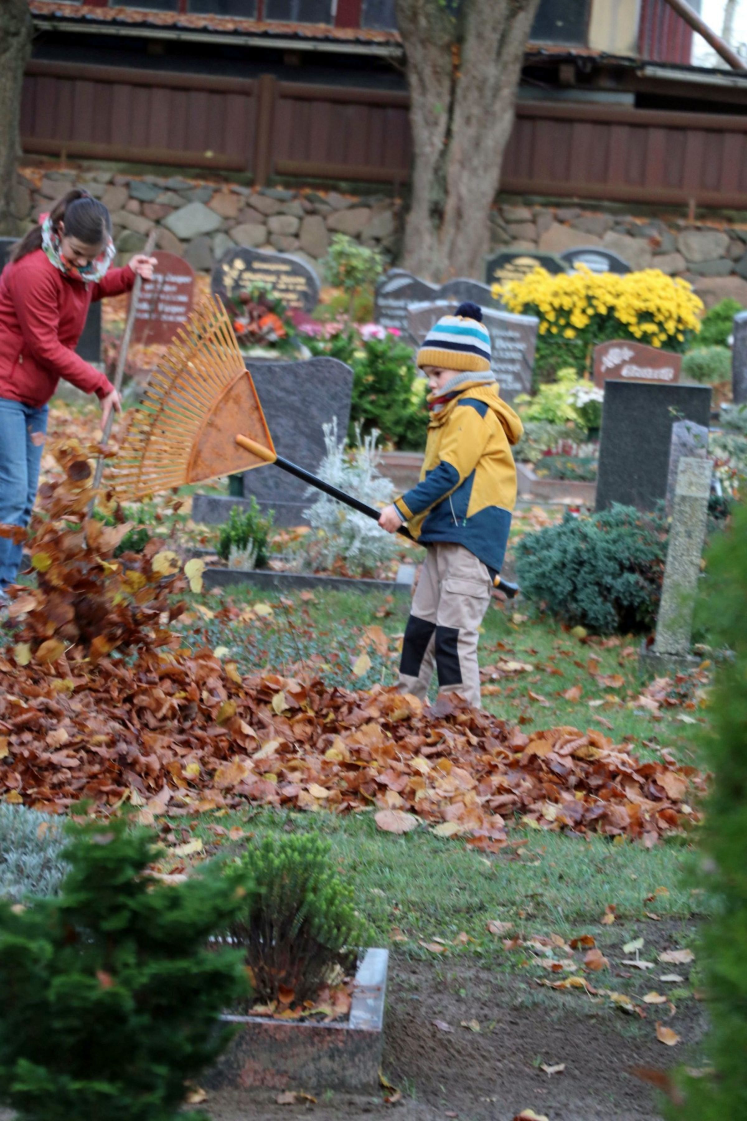 Zum Herbstputz auf dem Friedhof, Pfarrhof, Kirchengelände, Scheune und Kirche kamen 53 Personen, von jung bis alt. Technik half beim Laub und beim Dachrinne reinigen. Die Gullis sind sauber, die Fenster blitzen, die Kirche ist von Staub befreit, das Friedensbanner am Kirchhof sieht wieder richtig weiß aus und für die Adventszeit ist der Stern vorbereitet. Zum reichhaltigen Frühstück trafen sich alle im Saal der Scheune. Wunderbar, wir haben alles schaffen können, was auf der Liste stand. Herzlichen Dank für's umfangreiche Engagement.