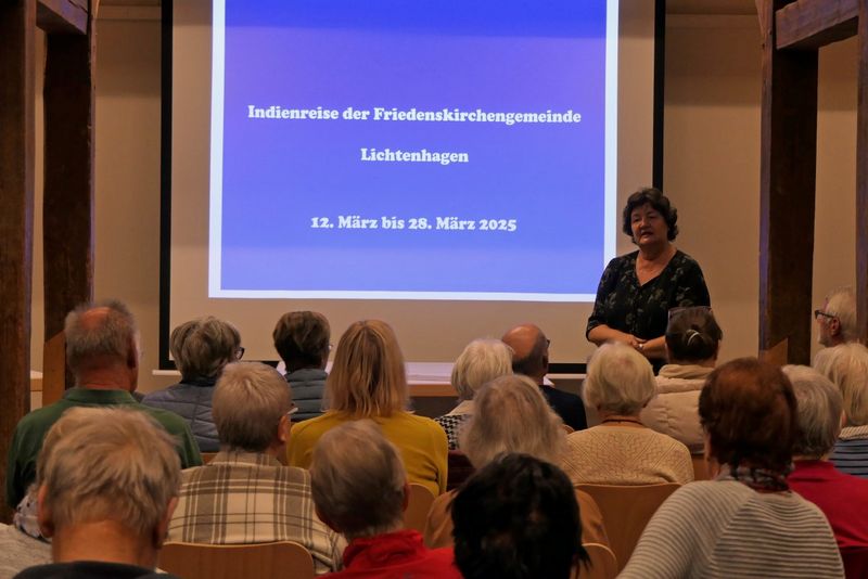 Wie angekündigt, fand der Gemeindeabend zur großen Indienreise im März 2025 statt. Über 30 Gäste fanden sich im Saal der Scheune ein, um den faszinierenden, sehr guten Bildern zu folgen, die Conny Buck, Horst und Gisela Mund vorstellten. Einführende Worte sprach Pastorin Anke Kieseler. Herzlichen Dank für die aufwendige Vorbereitung. Hier ist ein schriftlicher Reisebericht mit einer kleinen Auswahl von Bildern zu sehen.