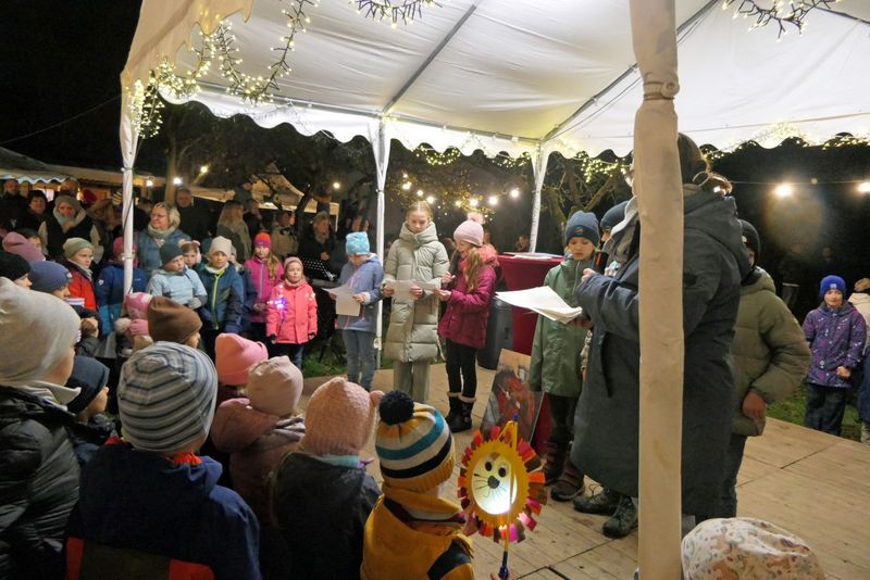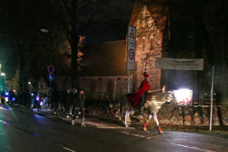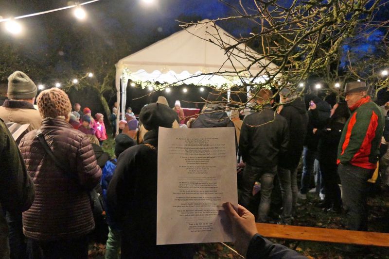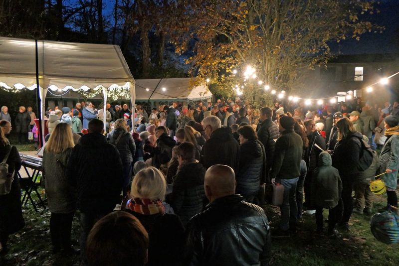 Zum Martinstag kamen viele Kinder mit ihren Familien in den Pfarrgarten. Gemeindepädagogin Conny Buck, Kantor Andreas Hain, der Posaunenchor und etliche Christenlehrekinder begleiteten die Martinsandacht mit Liedern, der Martnislegende und Gebet. Der anschließende Martinsumzug rund um das Dorfkirchenareal war so lang, dass die letzten fast erst losgingen, als Martin auf dem Pferd an der Kirche ankam. Im Pfarrgarten brannte das Martingsfeuer. Martinshörnchen, Kinderpunsch, Glühwein, fair gehandelter Kakao, Posaunenklänge und viele Gespräche erfüllten den Abend. Herzlich danken wir allen Teilnehmenden, den Aktiven und Ehrenamtlichen, die dieses schöne Fest ermöglichten.