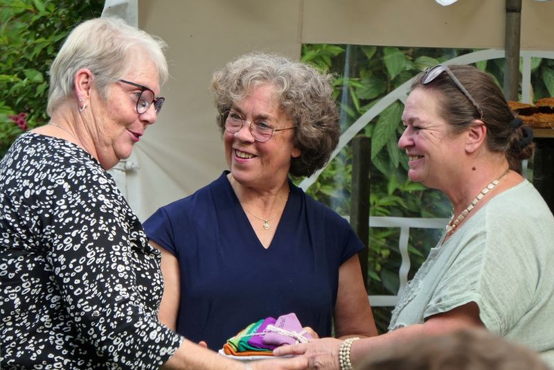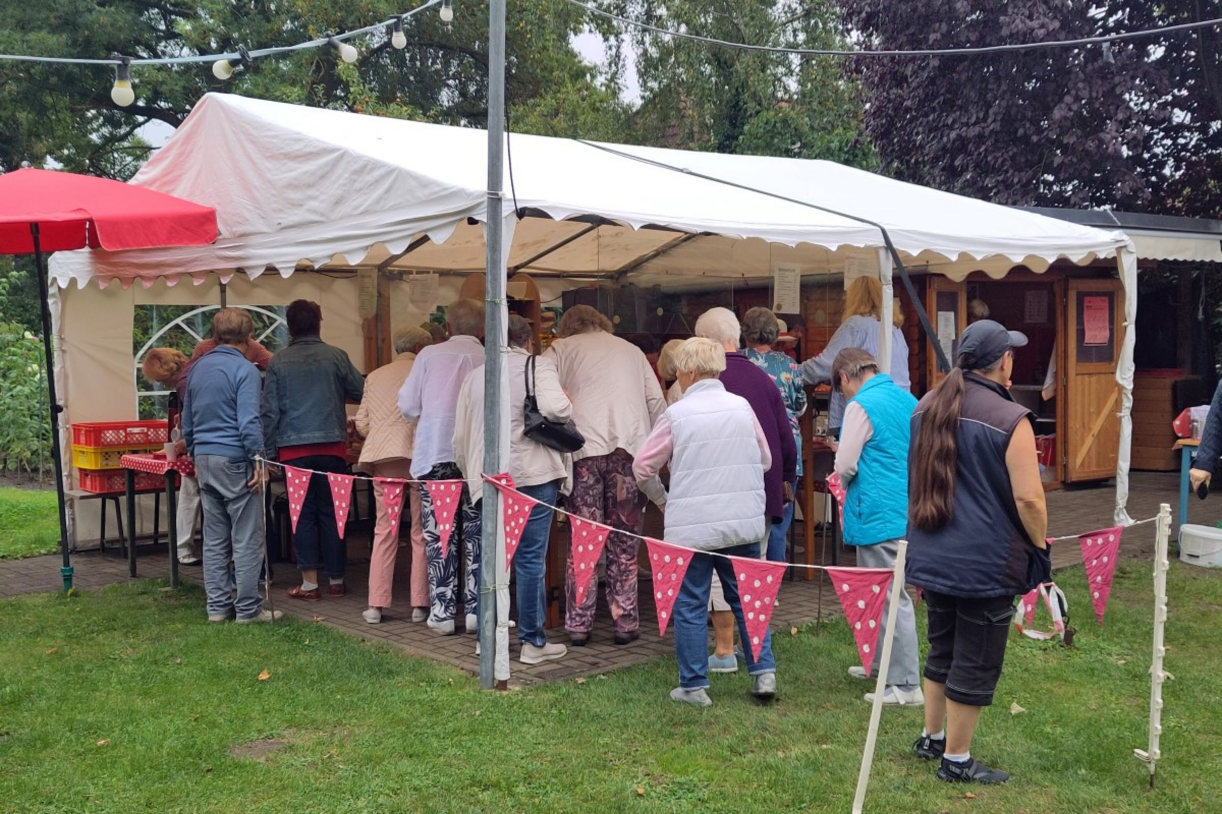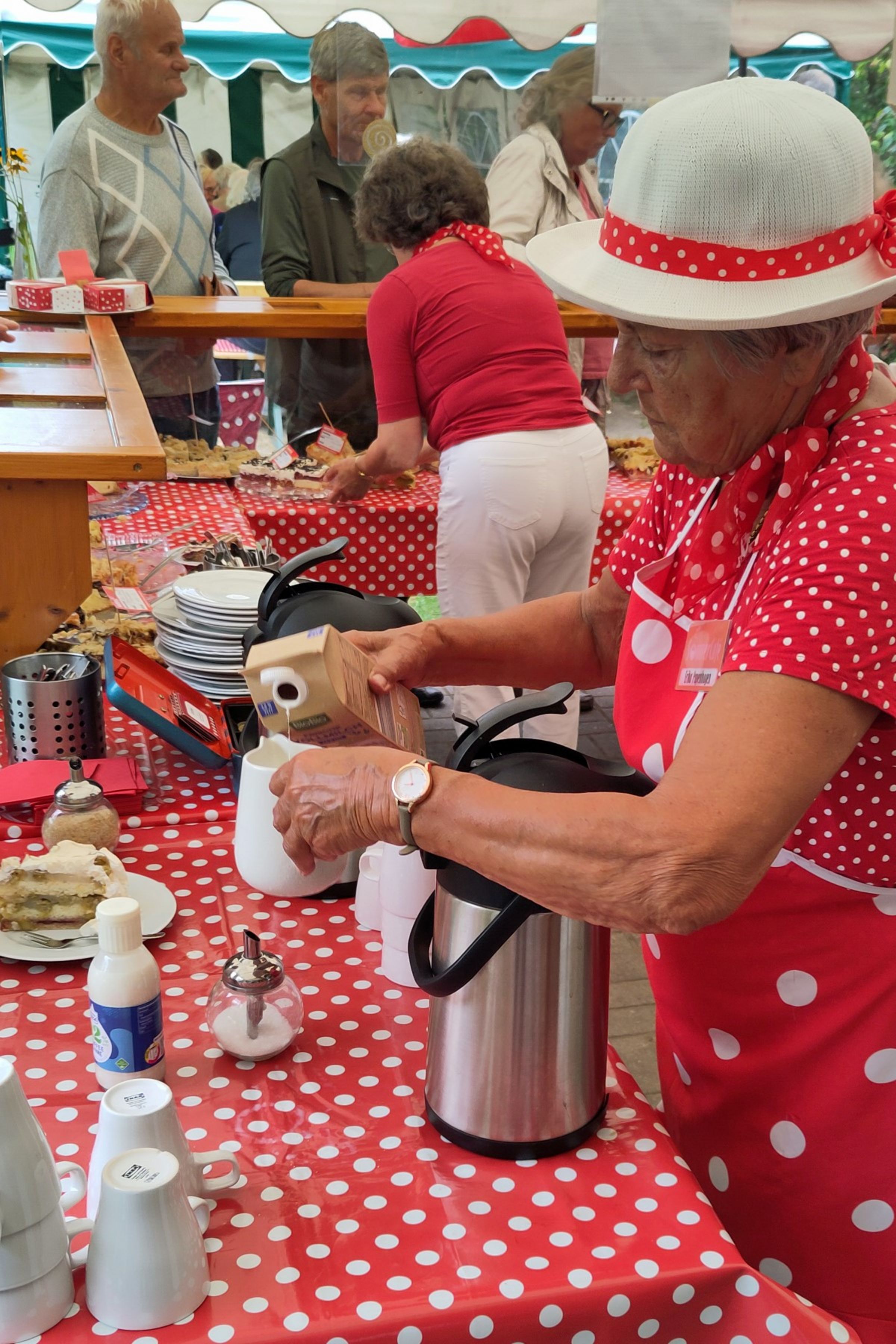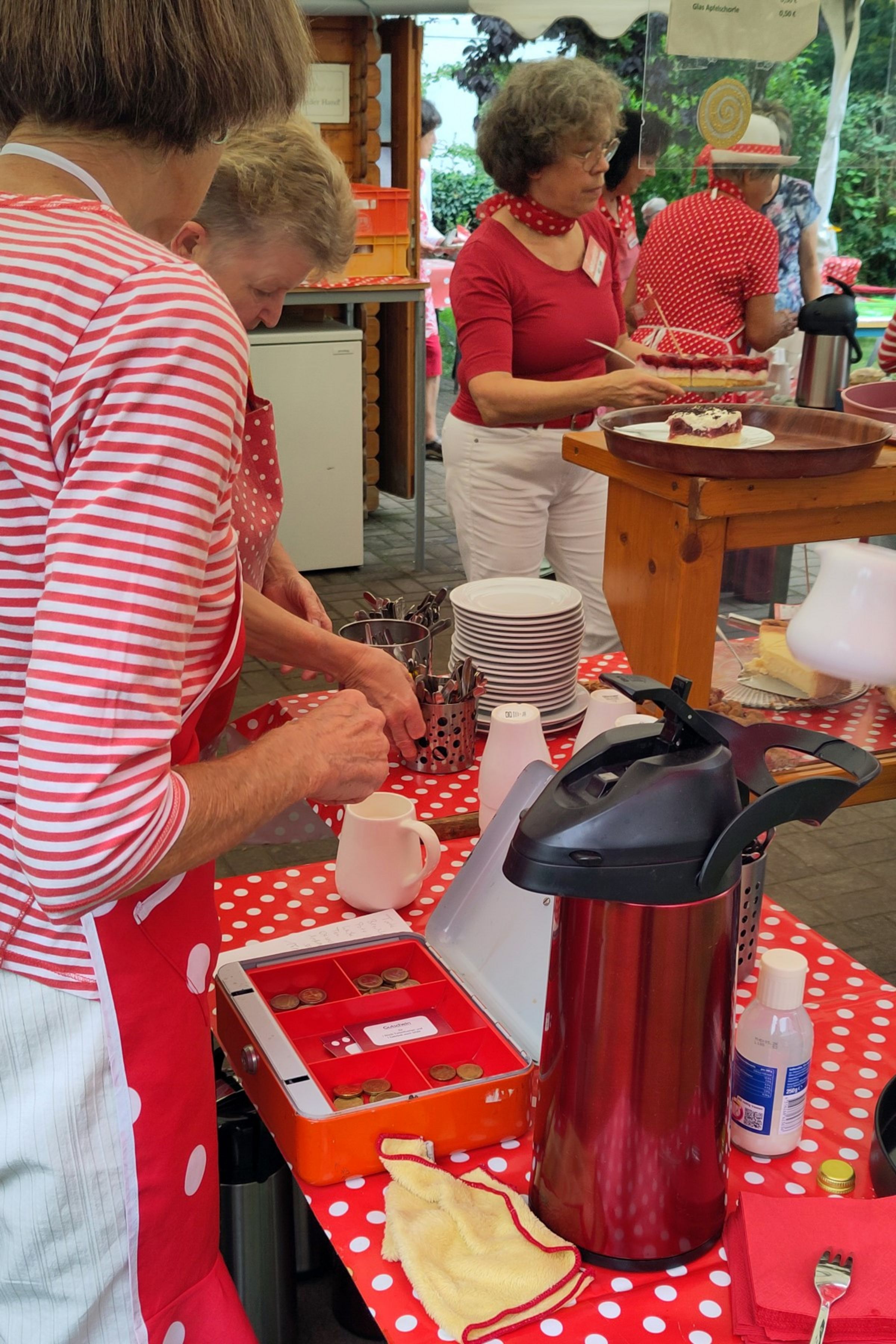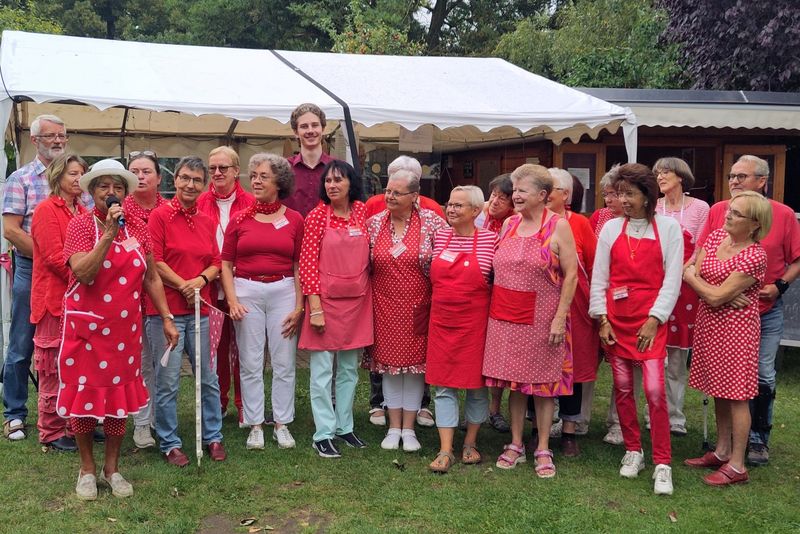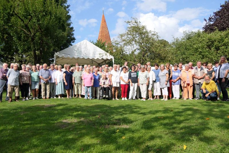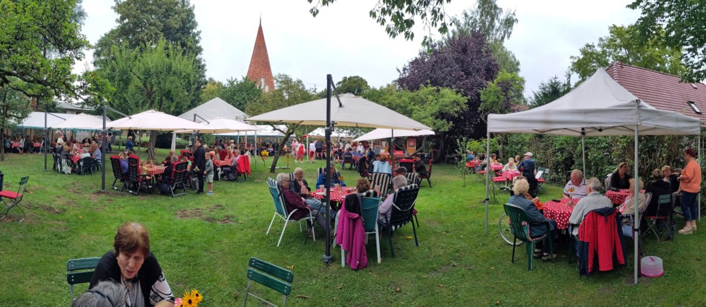 Es ist gute Tradition am ersten Donnerstag im September alle Kuchenbäckerinnen und -bäcker, die Männergruppe, die Kirchenaufsicht, die Musiker, das Weltladenteam und unser Sommer Café Team zum Dankeschön Kaffee einzuladen. 74 Ehrenamtliche kamen in unseren Pfarrgarten und ließen es sich bei herrlichen Sonnenschein mit Kaffee und Kuchen gut gehen. Liebevoll waren die Tische eingedeckt und für alle Anwesenden lag ein kleines Geschenk auf dem Platz. Eine Rückschau auf die 13 Donnerstage unserer 12. Saison hielten Gaby Palm und Conny Buck. Großes Staunen bei der Zahl von insgesamt 517 selbstgebackenen Kuchen. Somit verwöhnten wir im Durchschnitt mit 40 Kuchen/Torten unsere Gäste. Das Weltladenteam bedankte sich mit einem Geschenk für die gute Zusammenarbeit. Frau Pastorin Kieseler wertschätzte diese ehrenamtliche Tätigkeit von so vielen Menschen über einen so großen Zeitraum. Herr Riemer lobte unser großes Engagement, den Zusammenhalt und wie wir es immer wieder es aufs Neue schaffen, einen Raum für Begegnung anzubieten, welcher von vielen Menschen so gern angenommen wurde und wird. Beim Auseinandergehen stimmten alle mit ein: Wir freuen uns auf ein Wiedersehen im Sommer 2026.