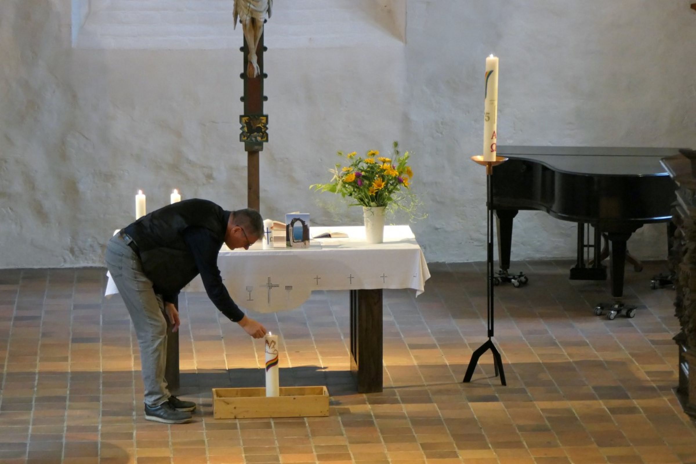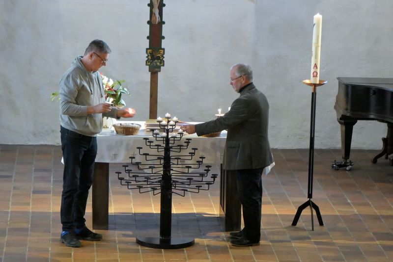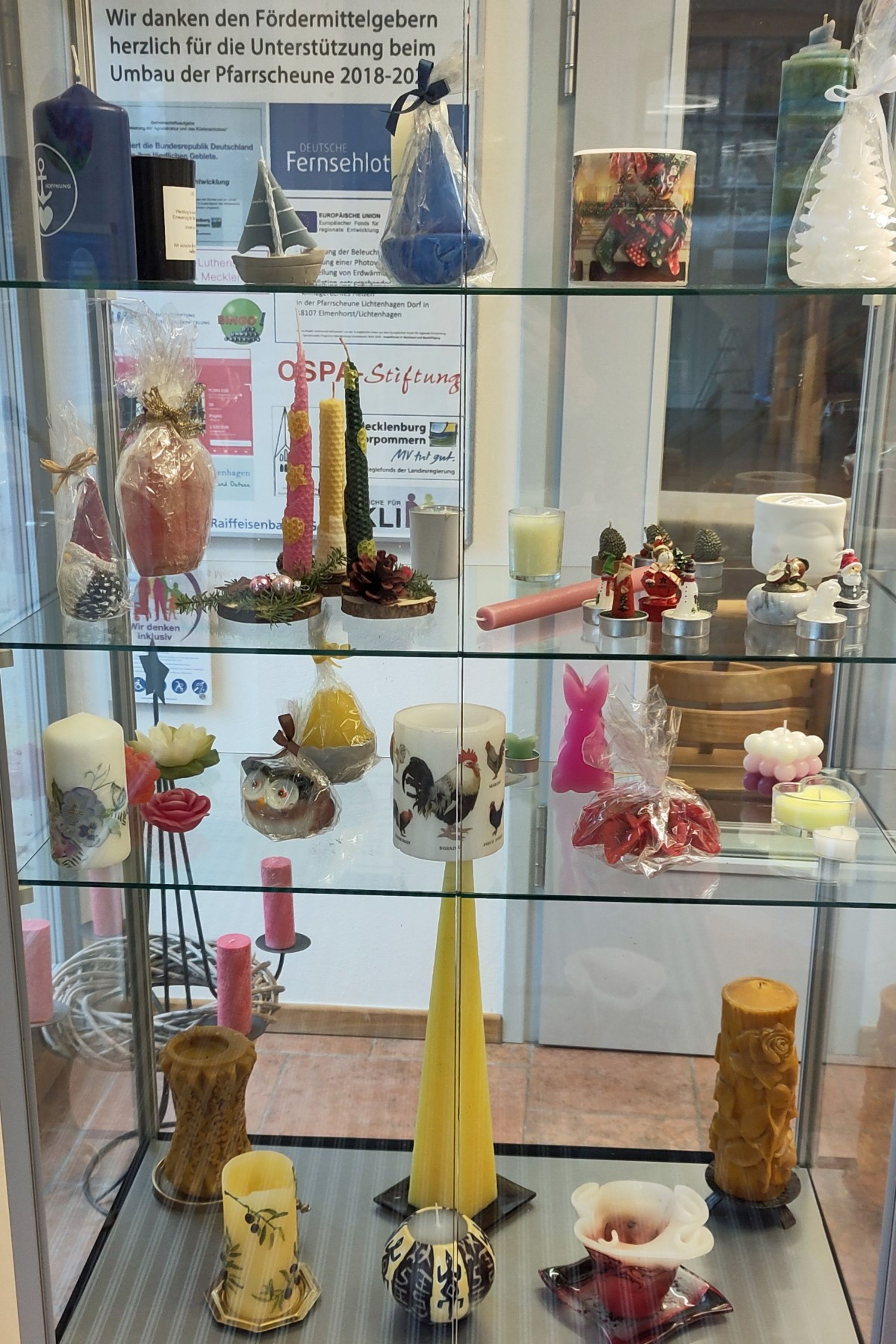 Nach dem Gottesdienst wurden die Kerzen-Ausstellung eröffnet, Namen für Päckchen für Kinder in der Unterkunft für Geflüchtete in Bad Doberan ausgegeben, der Weltladen hatte geöffnet, ebenso ein Büchertisch.