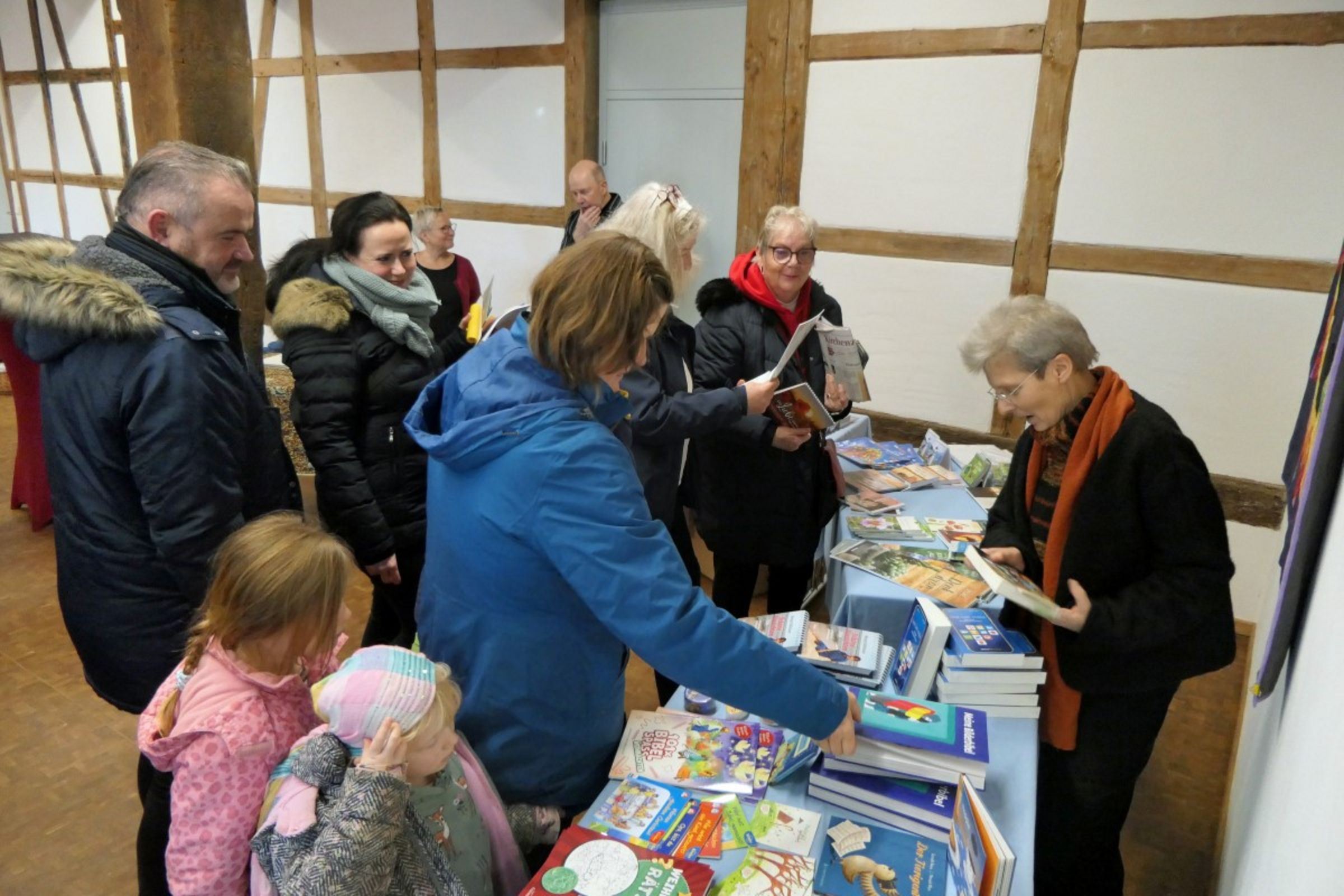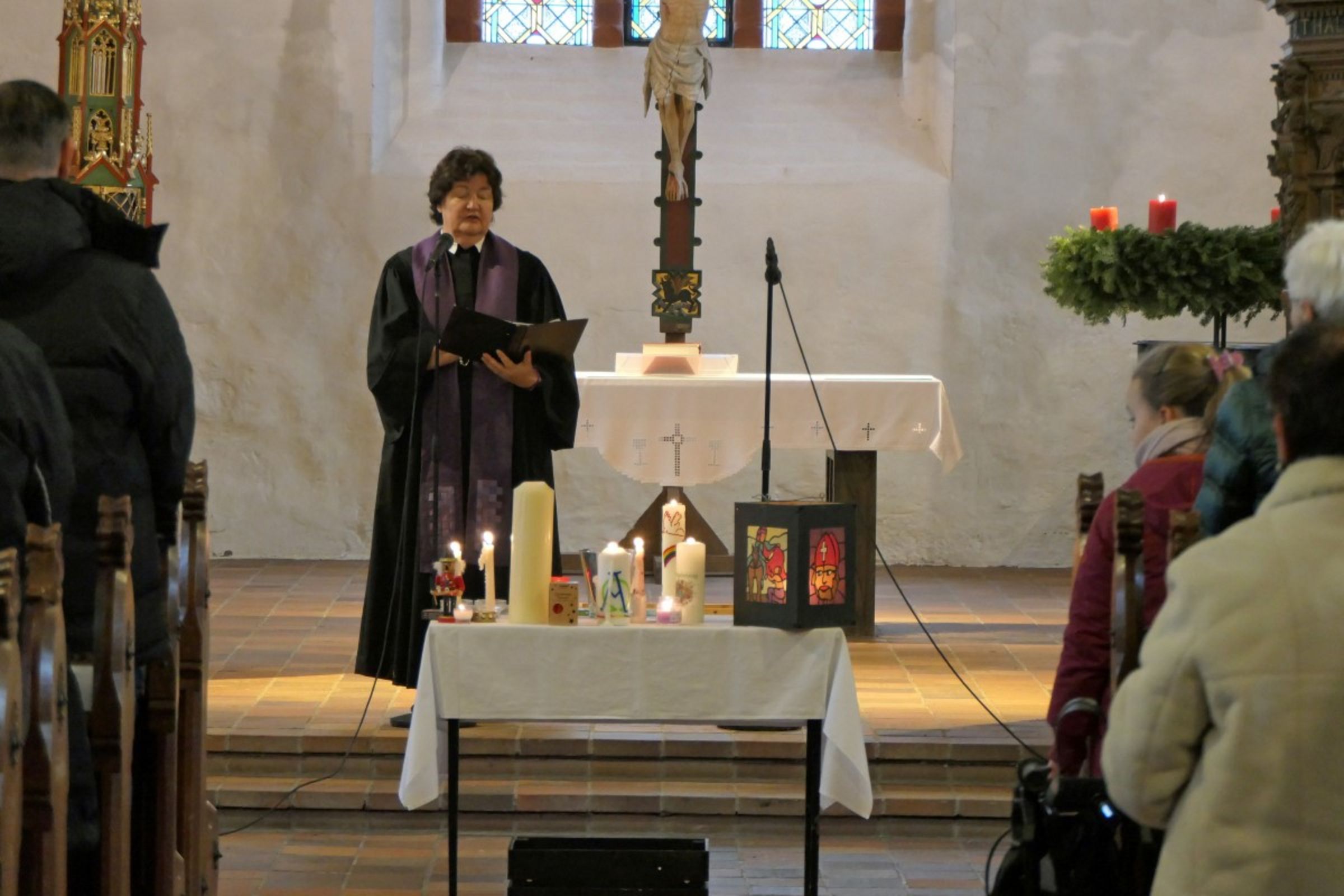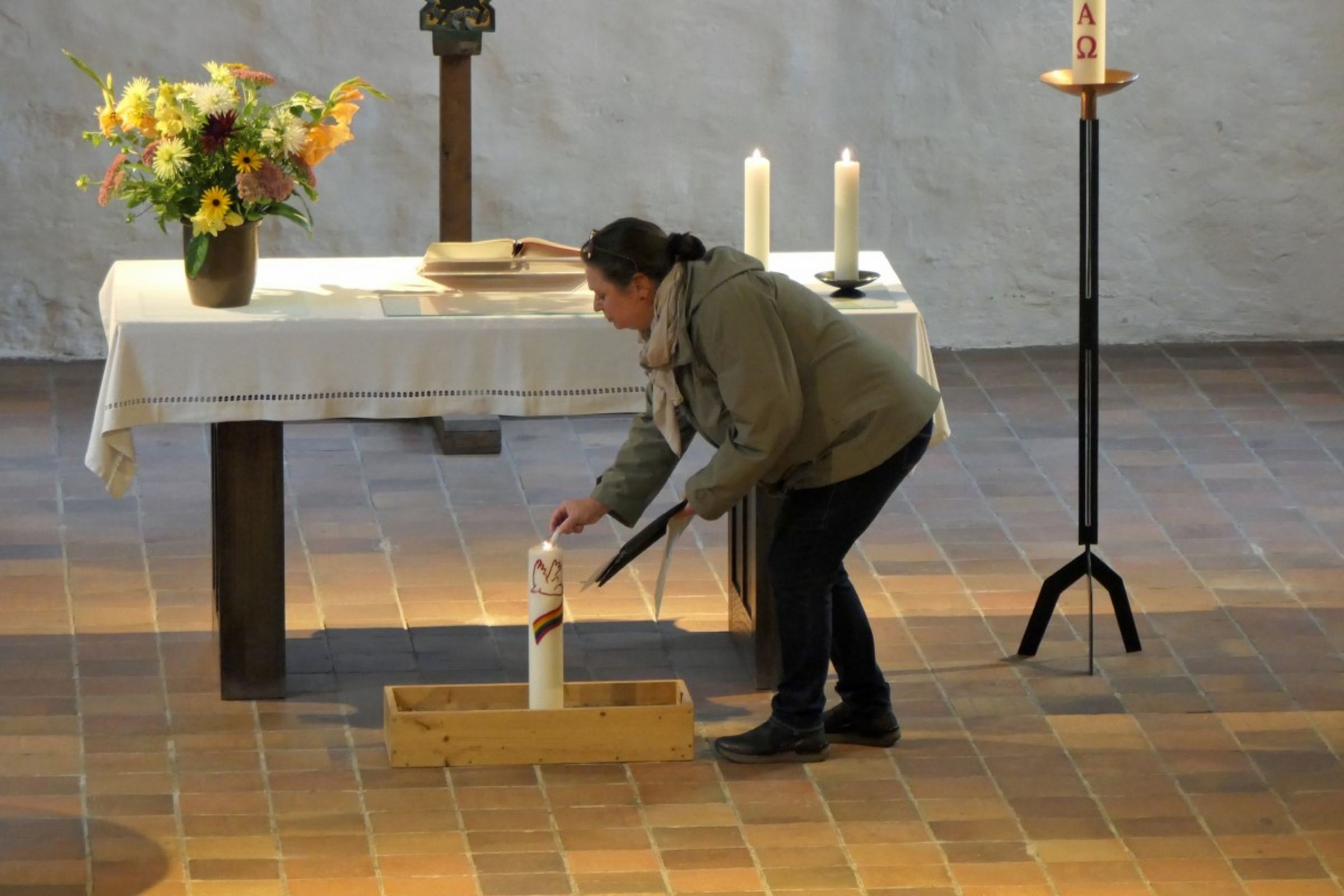 Nach dem Gottesdienst wurden die Kerzen-Ausstellung eröffnet, Namen für Päckchen für Kinder in der Unterkunft für Geflüchtete in Bad Doberan ausgegeben, der Weltladen hatte geöffnet, ebenso ein Büchertisch.