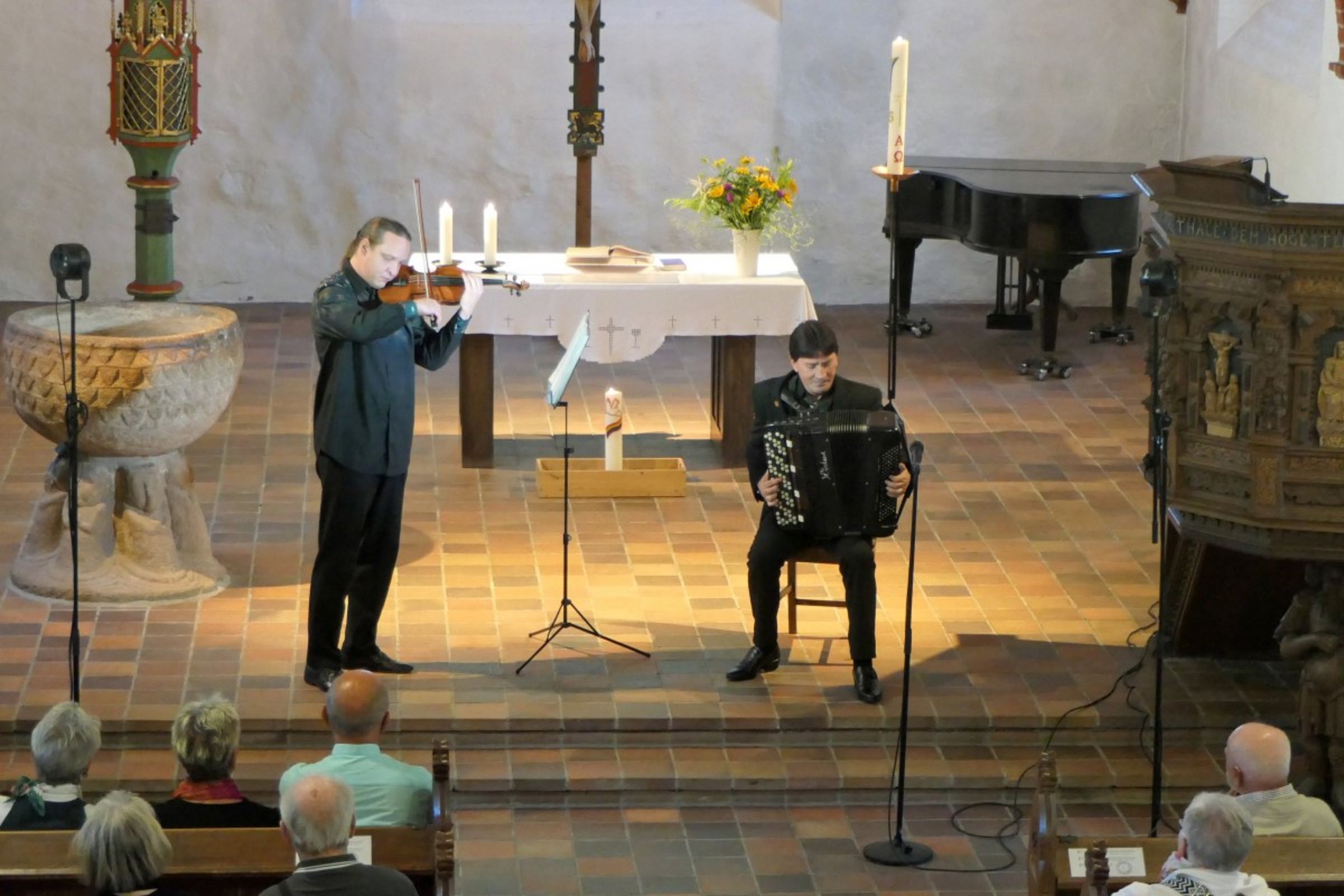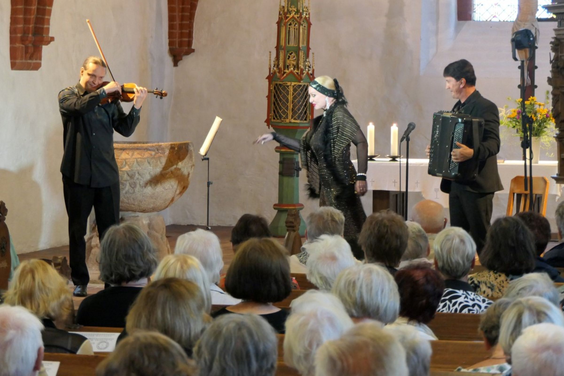 Mit Virtuosität, Spielfreude, Temperament und Perfektion entstand im Konzert ein ganz besonderes Erlebnis für die zahlreichen Zuhörer*innen in unserer Dorfkirche. In der Besetzung Gesang, Violine und Knopfakkordeon wurde hervorragende Tango-Musik zu Gehör gebracht und es lag ein Hauch von Buenos Aires über Lichtenhagen Dorf.