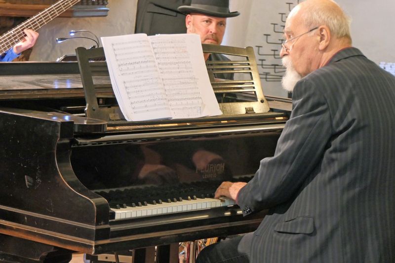 Unsere jährliche Hausmusik im Saal der Pfarrscheune - immer am letzten Sonntag im Januar - ist wie eine Schachtel Pralinen: man weiß vorher nie, was drin ist, aber es ist viel „Leckeres“ dabei. Gestern Abend überraschte uns ein Männersextett, wir hörten sanfte Saxophon-Klänge, Klaviervariationen, Flöte, Trompete und Gesangsstücke, fast alles begleitet von Kantor Andreas Hain. Und es sang auch der ganze Saal. Allen Musizierenden ein herzliches Dankeschön!