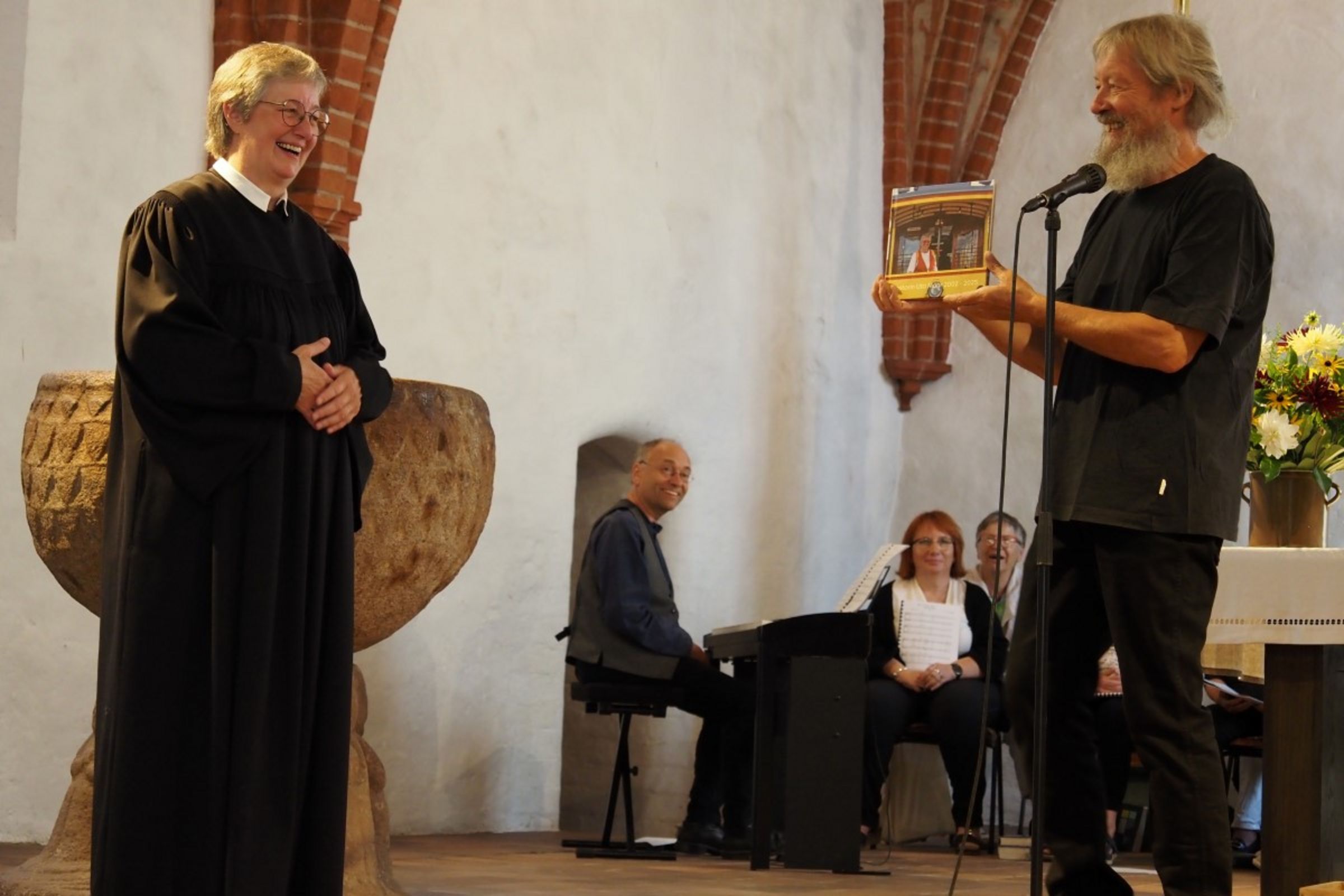 Nach 23 Jahren im Pastorinnendienst in Rostock Lütten Klein wurde Uta Möhr in den Ruhestand (fast) verabschiedet. Sie arbeiteet bis zum Jahresende noch mit 25% weiter. Propst Fey dankte mit bewegenden Worten für ihren Dienst, Christel Huhndorf und Peter Erben konnten auf viele schöne Jahre im KGR zurückblicken, Friedrich Heilmann überreichte ein Fotobuch. Pastor Volkmar Seyffert grüßte von der Kirchenregion Doberan, Pastor Dietmar Cassel für Rostock. Der Lichtenhäger Gospelchor, in dem Uta Möhr auch Mitglied ist, sang.