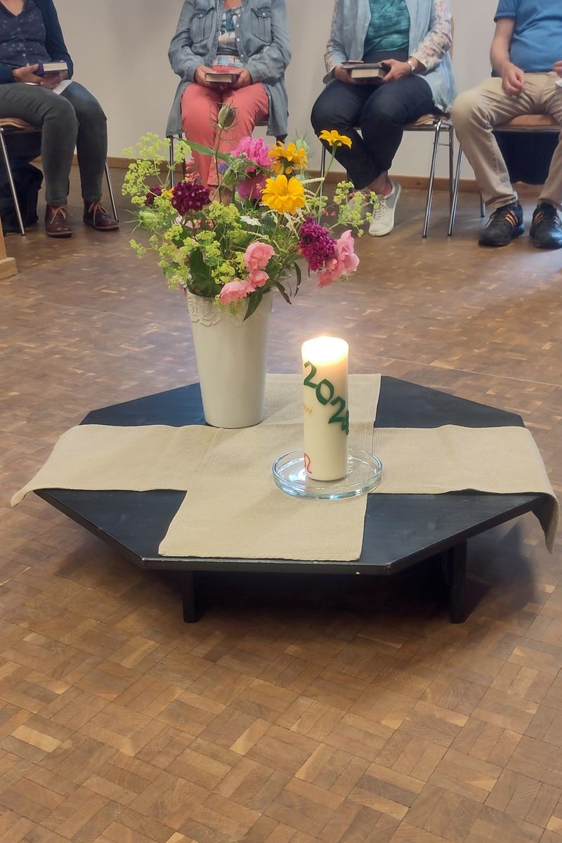 Im Taizé-Gottesdienst sangen wir u.a. "Bleib mit deiner Gnade bei uns" (Taizé-Heft 112), "Ubi caritas" (Nr. 15), "Meine Hoffnung und meine Freude" (Nr. 17). In der 10-minütigen Stille war Zeit, die Seligpreisungen zu beten und über einen Vers nachzudenken, der als besonders empfunden wurde. Aus der Stille wurden wir mit "The Kingdom of God" (Nr. 115) herausgeführt und konnten uns anschließend darüber austauschen.