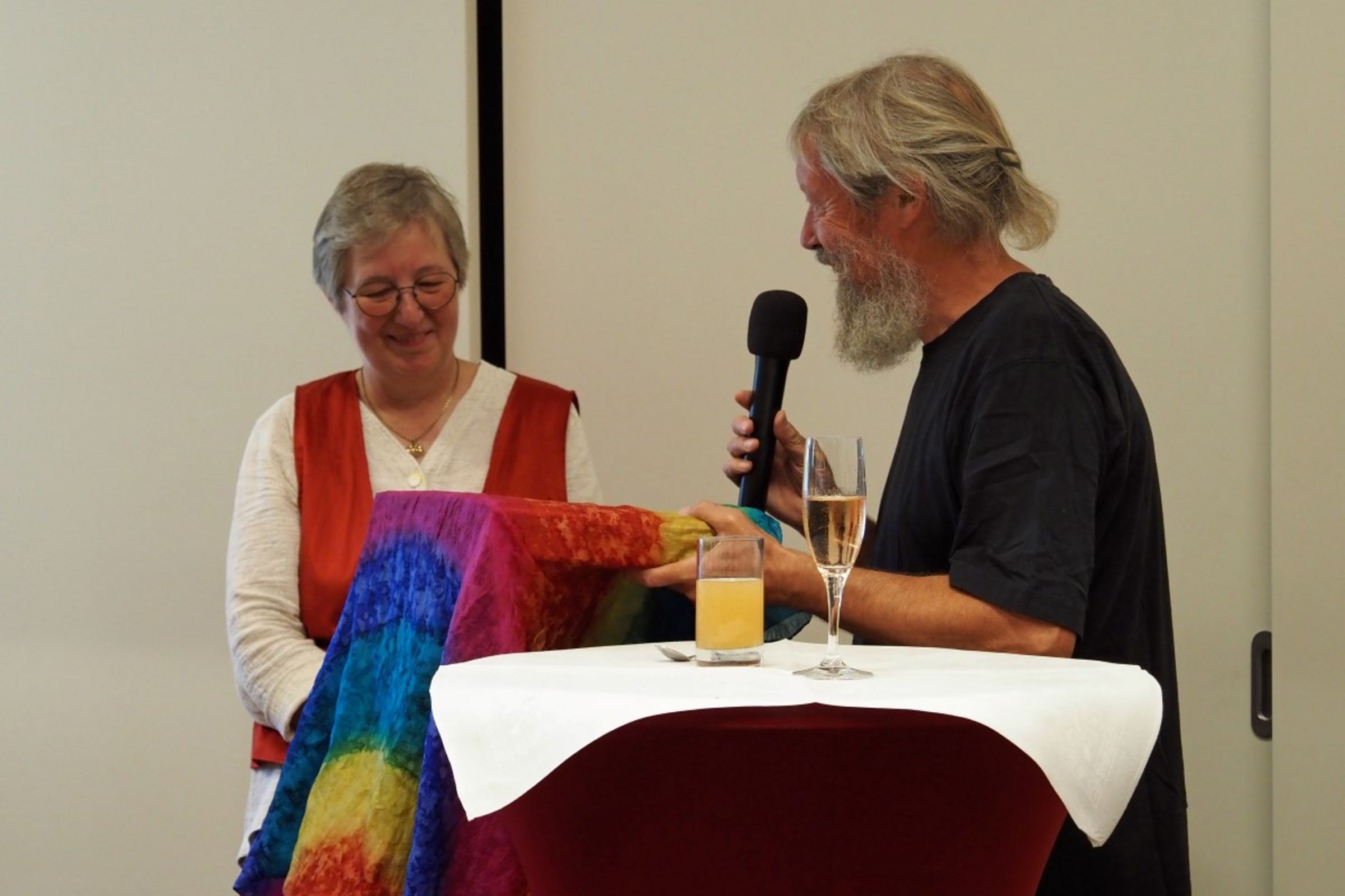 Der Kirchengemeinderat hat sich beim "Farbkreis 10" mit einem kleinen Geschenk groß bedankt.