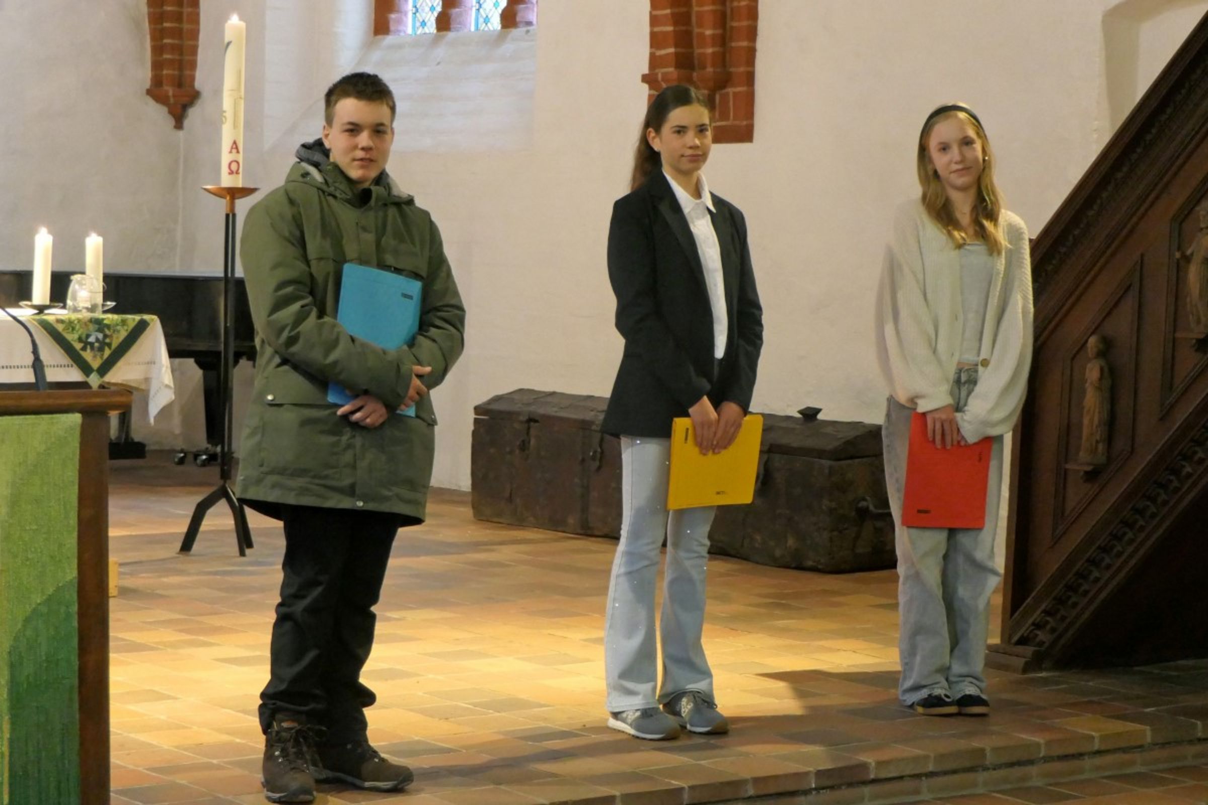 Im Gottesdienst wurden Katrin Pfeiffer und Niss Jannes Jargstorff verabschiedet. Die beiden Theologiestudierenden befinden sich nun in der Examens-Phase - dafür wünschen wir alles Gute - und werden sich anschließend ins Vikariat begeben bzw. eine Promotion anstreben.