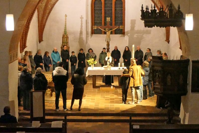 Monatlich gibt es in diesem Jahr eine Taizé-Andacht am Sonntagvormittag um 10 Uhr. Am 8. Februar feierten wir die Andacht mit vielen Taizé-Liedern, begleitet von Klavier, Cello und Gitarre, einer 10-minütigen Andachtsstille zu Marias Lobgesang und kurzen Fürbitten mit dem Kyrie-Gebetsruf.