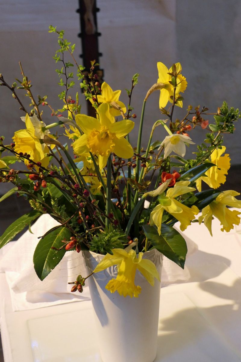 Das Gleichnis vom Weizenkorn und das Thema "Freude schenken" standen im Mittelpunkt. Neues Leben entsteht, wenn etwas gesät wird. Freude ist nicht immer laut. Manchmal wächst sie leise. Alle Kinder säten Weizenkörner aus und wir hoffen, dass bis sie Ostern aufgegangen sind. Freude schenken wollen wir mit Sonnenblumen. Die Gottesdienstbesucher*innen erhielten kleine Schachteln mit Sonnenblumensamen. Diese sollen zu Hause vorgezogen werden und dann an unterschiedlichen Orten in unserer Gemeinde gepflanzt werden. Mit dem Kanon „Der hat sein Leben am besten verbracht, der die meisten Menschen hat froh gemacht“ sangen zuerst die Kinder und die Gemeinde stimmte mit ein. Die Kollekte - 257 Euro - war für das Projekt „Bunte Kindheit“ in der Ukraine (siehe weiter unten Punkt 2) von Diakonie Katastrophenhilfe bestimmt. Nach dem Gottesdienst banden viele Kleine und Große einen Laetarestrauß für zu Hause und natürlich auch, um Freude an Gemeindeglieder zu verschenken.