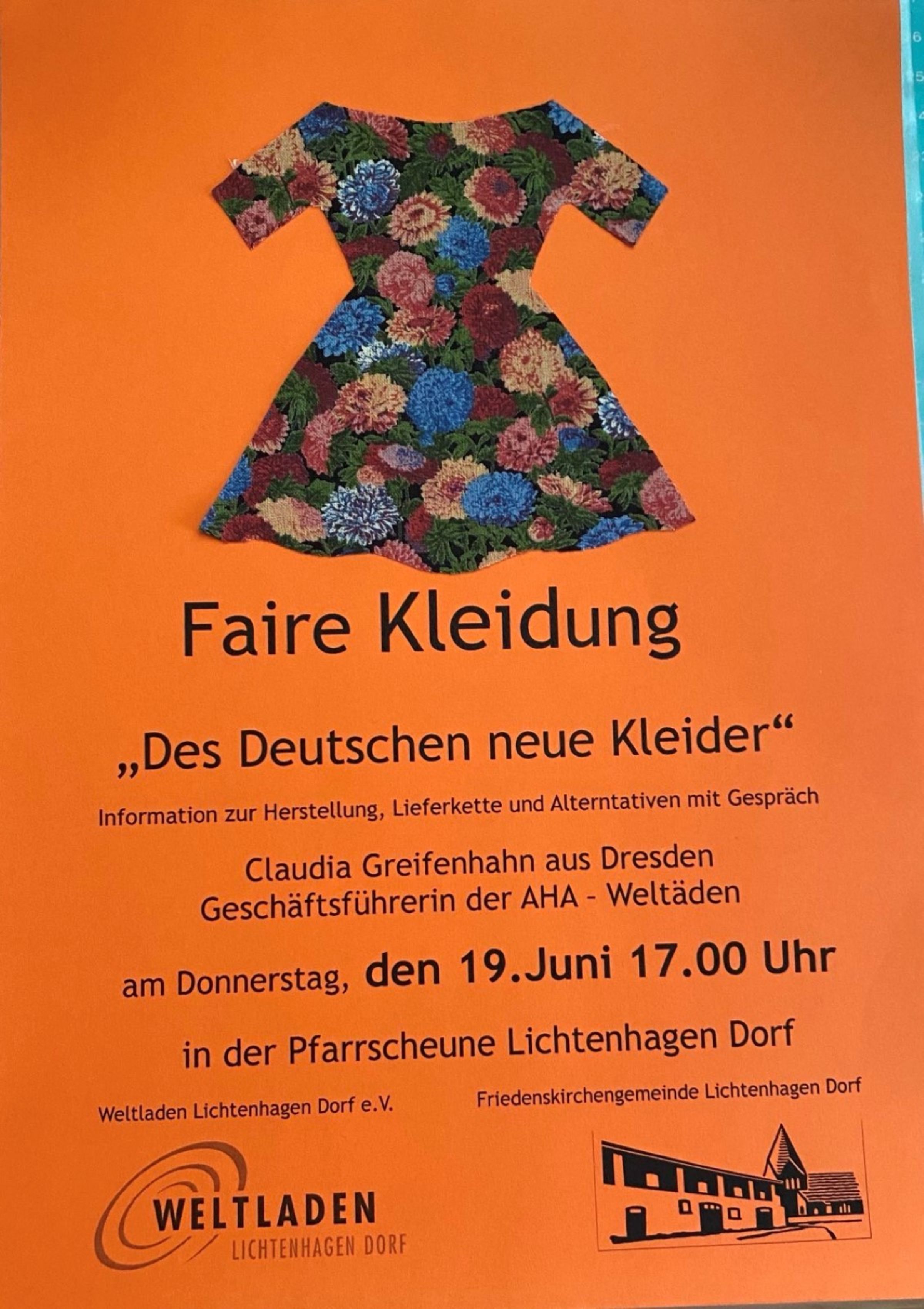 - 19.06.2025: Claudia Greifenhahn (siehe auch 4.4.25) hielt einen allgemeineren Vortrag über das Thema fair hergestellte Kleidung für die Gemeinde und interessierte Besucher.